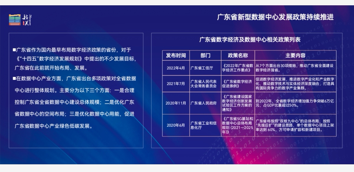廣東省在數字經濟與數據中心產業方面,已有多項新型數據中心有關政策持續推進,並在數據中心產業整體規劃布局、加大人才引進培養力度層面,推出相應的多重保障措施保證新型數據中心穩定發展。
