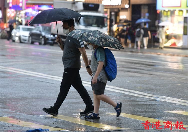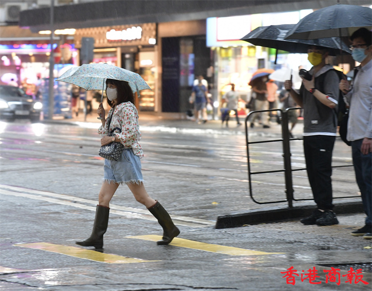 不過,大部分人都站到一旁避雨,惜這場紅色暴雨警告連續發放多個小時,雨勢未見減弱,不少人也懶理風吹雨打,已等不及停雨只好冒雨狂奔。(記者 崔俊良攝)