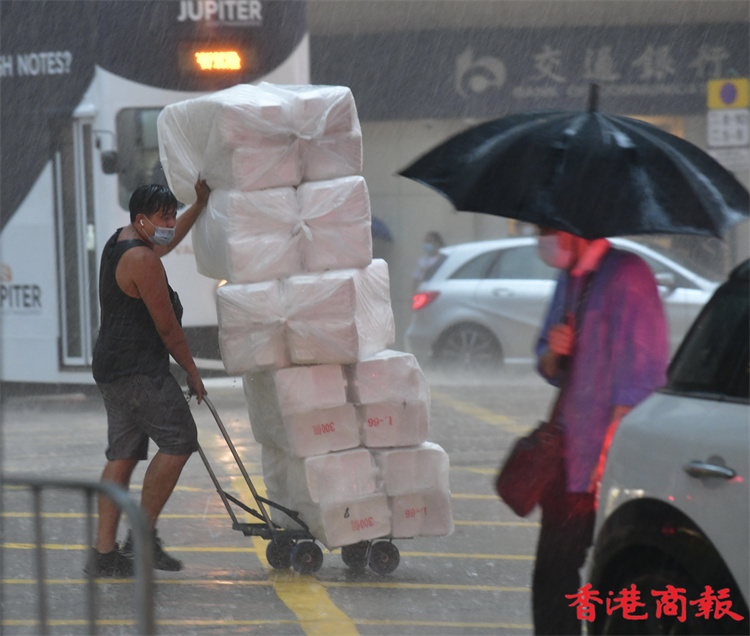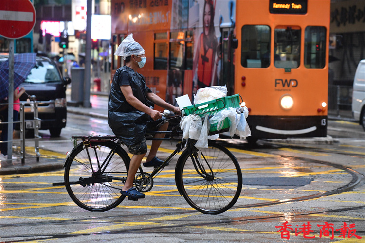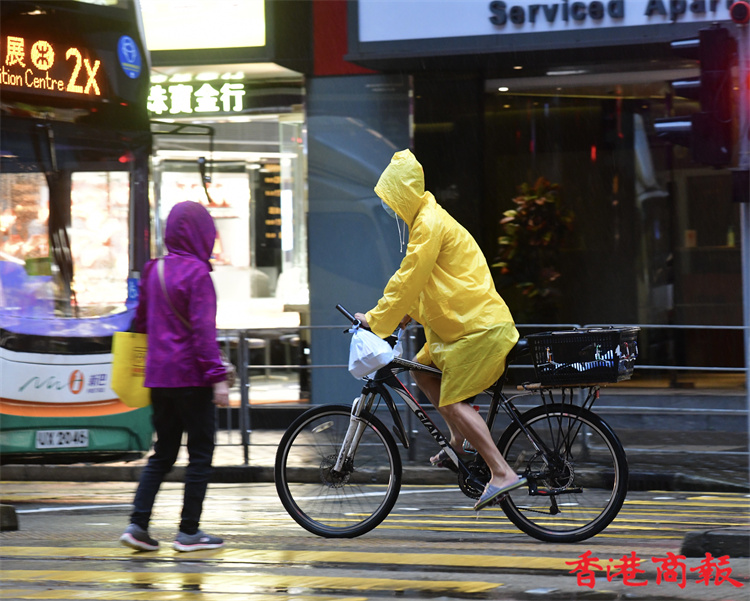 其中在銅鑼灣區,大雨不停,有打工仔繼續冒雨騎單車送外賣,不懼豪雨拍打向目標進發,濺起不少水花;也有市民早有準備,穿着水靴減輕雙腳入水。