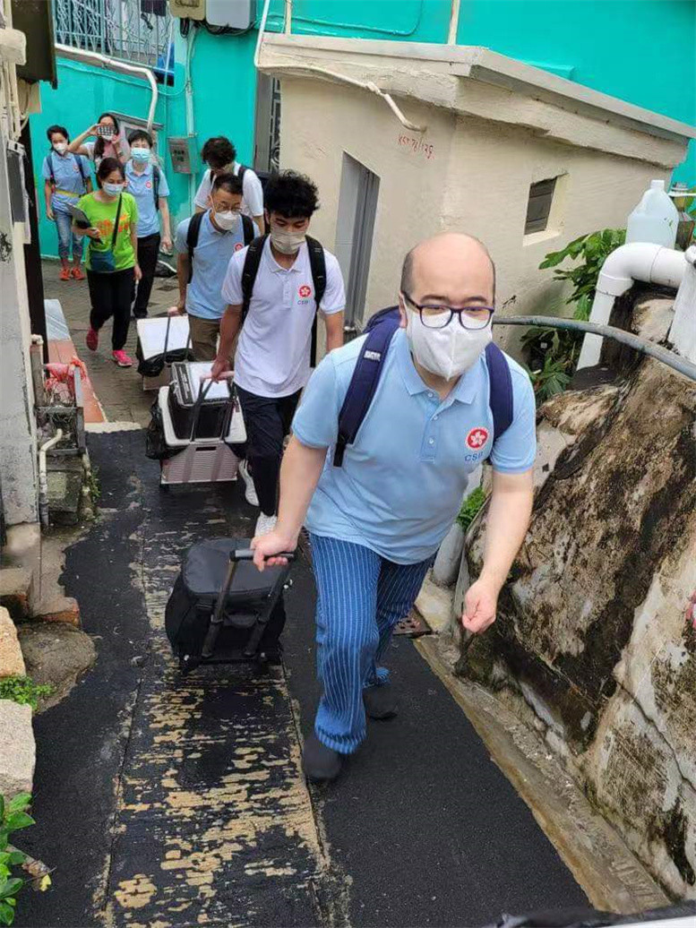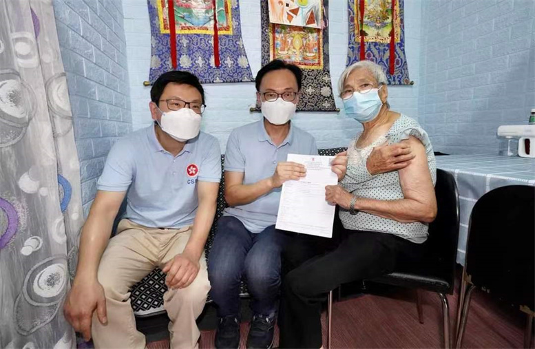 居民對義工隊的到來都十分雀躍,傾談間疫苗已接種好,他們又不忘分享生活點滴,有行船三十多年的91歲伯伯,分享自己走遍多個國家的經歷;一個婆婆則訴說,得知有「疫苗到戶接種服務」後,立即上網預約,強調是自己上網預約的!真厲害。有長者或因緊張,血壓較高,當刻並不適合接種,但我們沒有輕易放棄,由其他小隊下午折返,再評估,合適便打針,不合適,我們再安排。