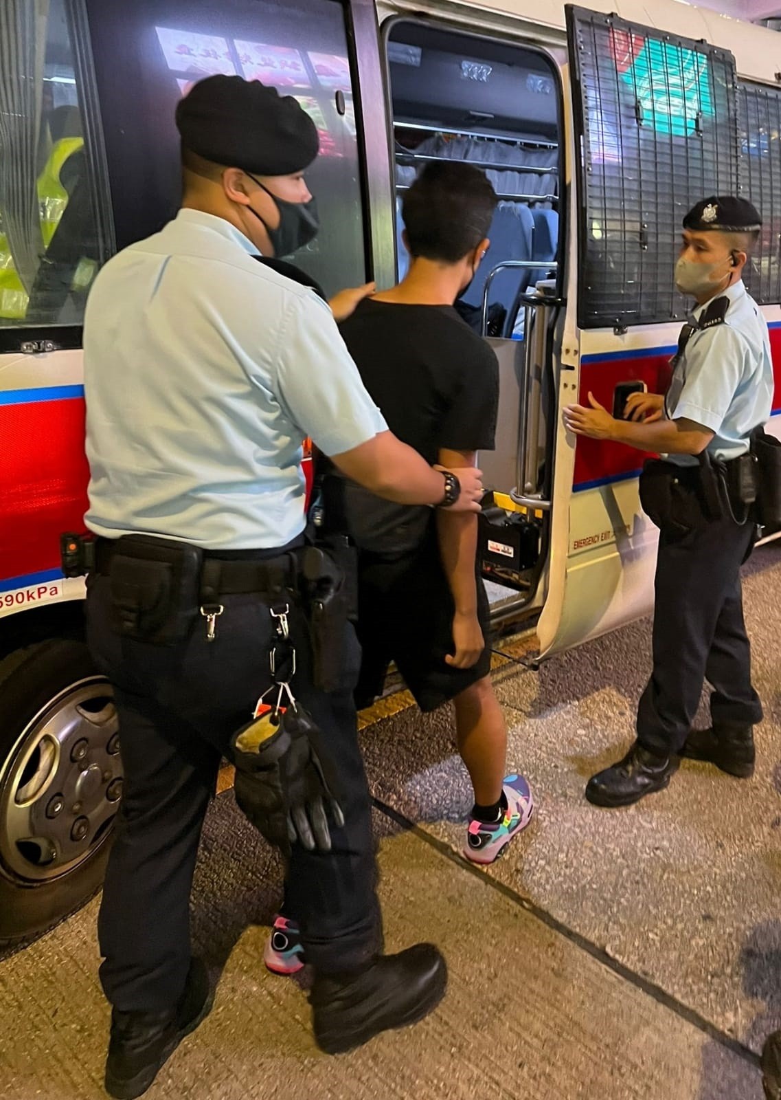 行動中在山林道一間樓上酒吧發現一名姓鄺(26歲)男顧客因未能出示安心出行的掃描紀錄,涉嫌違反《預防及控制疾病(規定及指示)(業務及場所)規例》(第599F章)被票控。