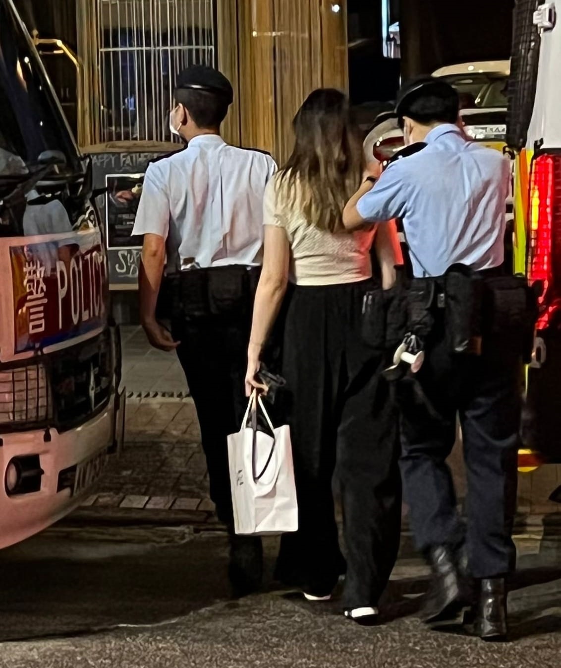 另外,警員在金巴利道2間酒牌食肆,分別發現姓梁(24歲)及姓徐(28歲)女顧客未能出示安心出行掃描的紀錄及在場內吸煙,涉嫌違反《預防及控制疾病(規定及指示)(業務及場所)規例》(第599F章)及《吸煙(公眾衞生)條例》;2名分別姓李(32歲)及姓葉(50歲)男負責人將會被警方票控。其中一間酒牌食肆內姓吳(26歲)女顧客則懷疑向警員出示他人的電子針卡,涉嫌企圖誤導警務人員被捕。