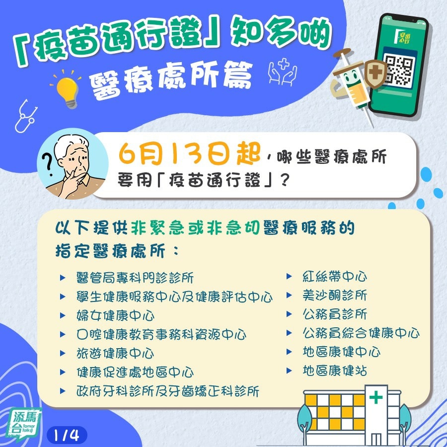 本港疫情近期有反彈跡象,醫管局總行政經理劉家獻提醒市民,專科門診明日(13日)開始實施「疫苗通行證」,未符合「疫苗通行證」要求的求診人士,可以用48小時內核酸檢測結果代替,但家屬和陪診人士就不可以用核酸檢測代替。另外,「疫苗通行證」安排不適用於提供緊急服務或診治偶發疾病的醫療處所,包括急症室等。