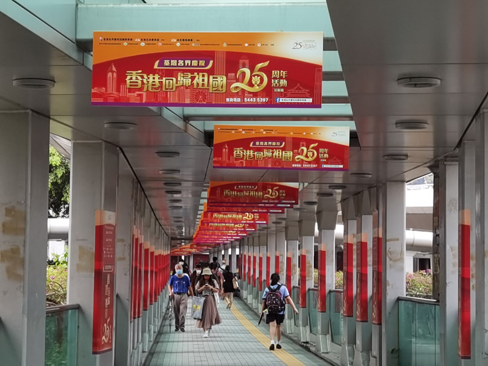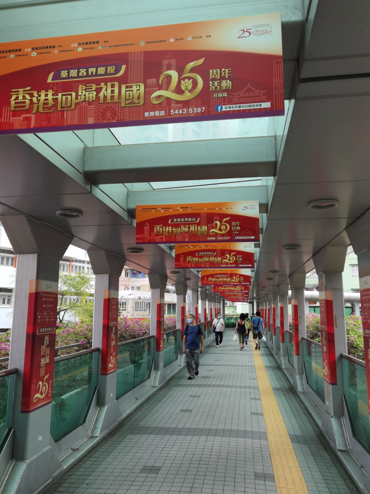 荃灣區的市民們近日驚喜地發現,自己生活的城區中陸續上線了多款「荃灣各界慶祝回歸祖國25周年」的宣傳品,從地鐵站到街市,從新天橋網絡到海濱長廊,處處洋溢著節日的氣氛。