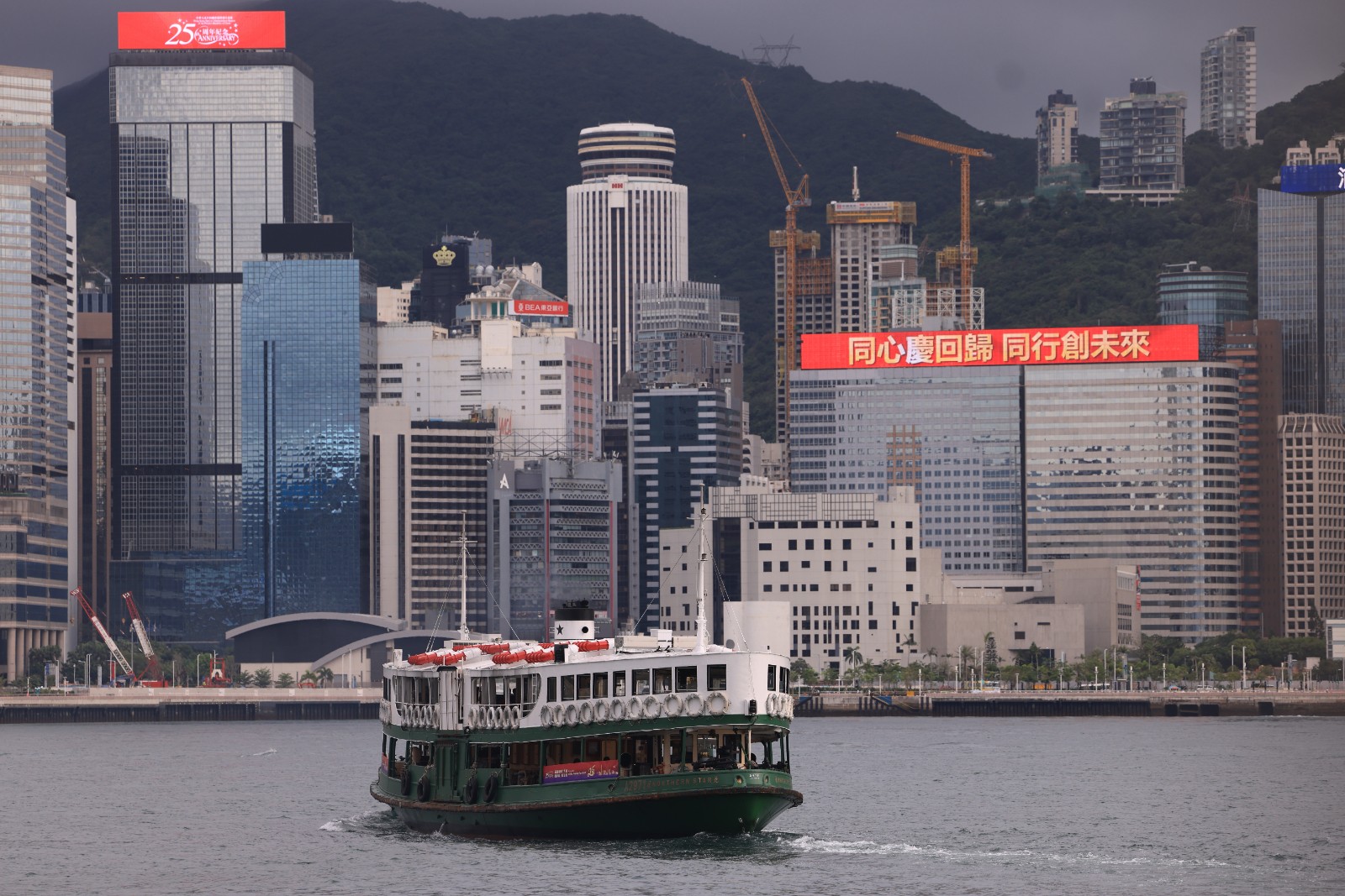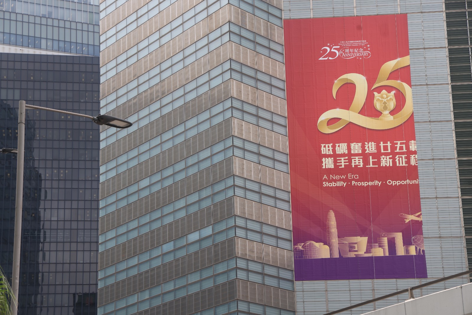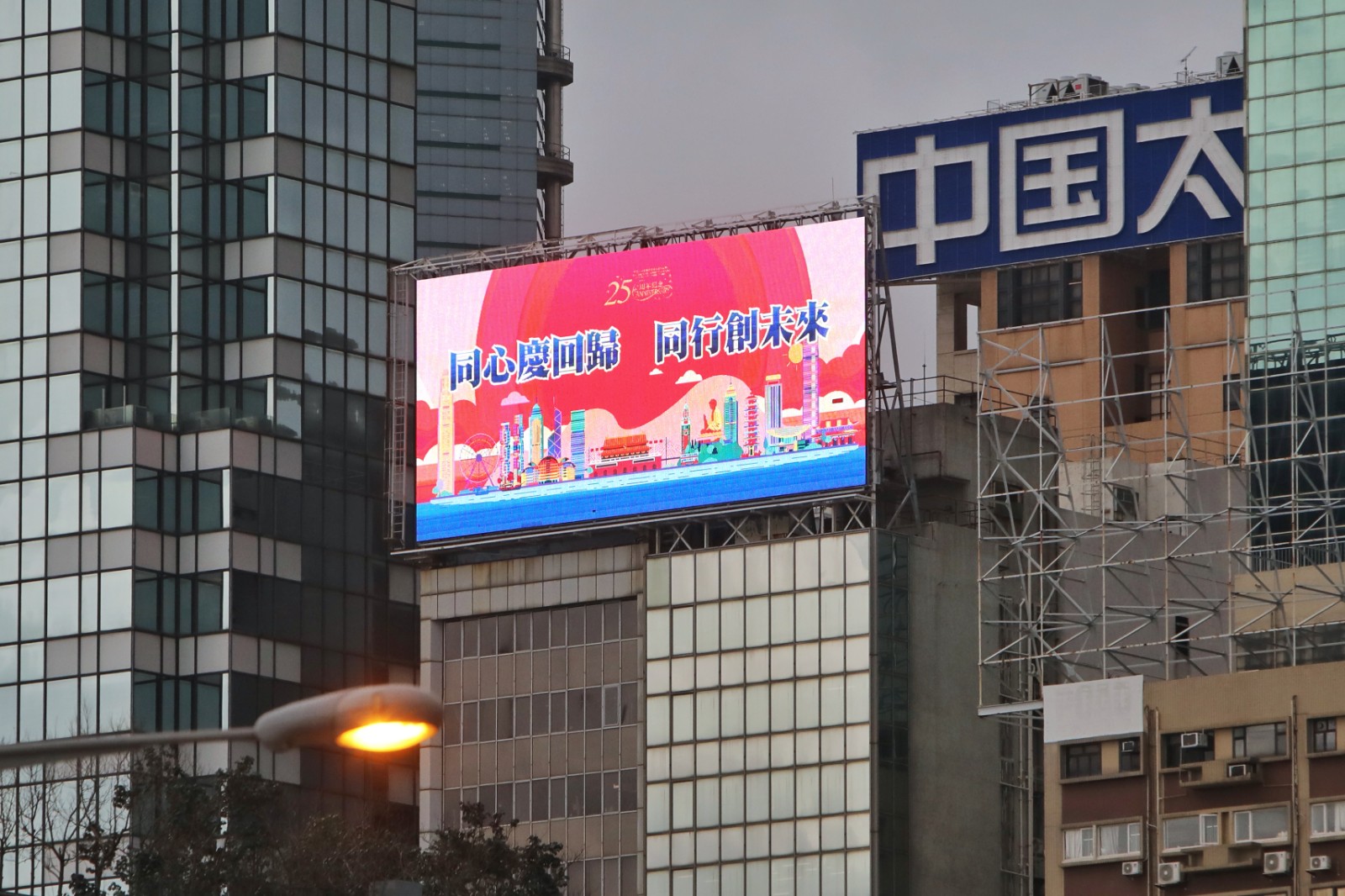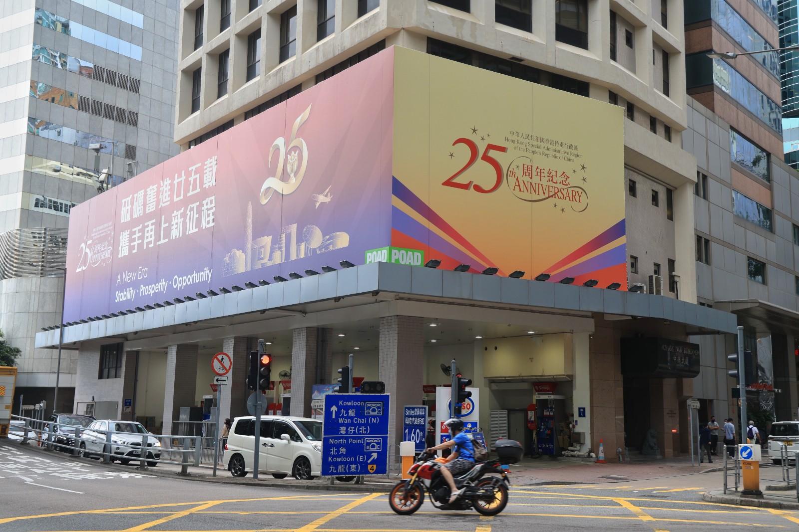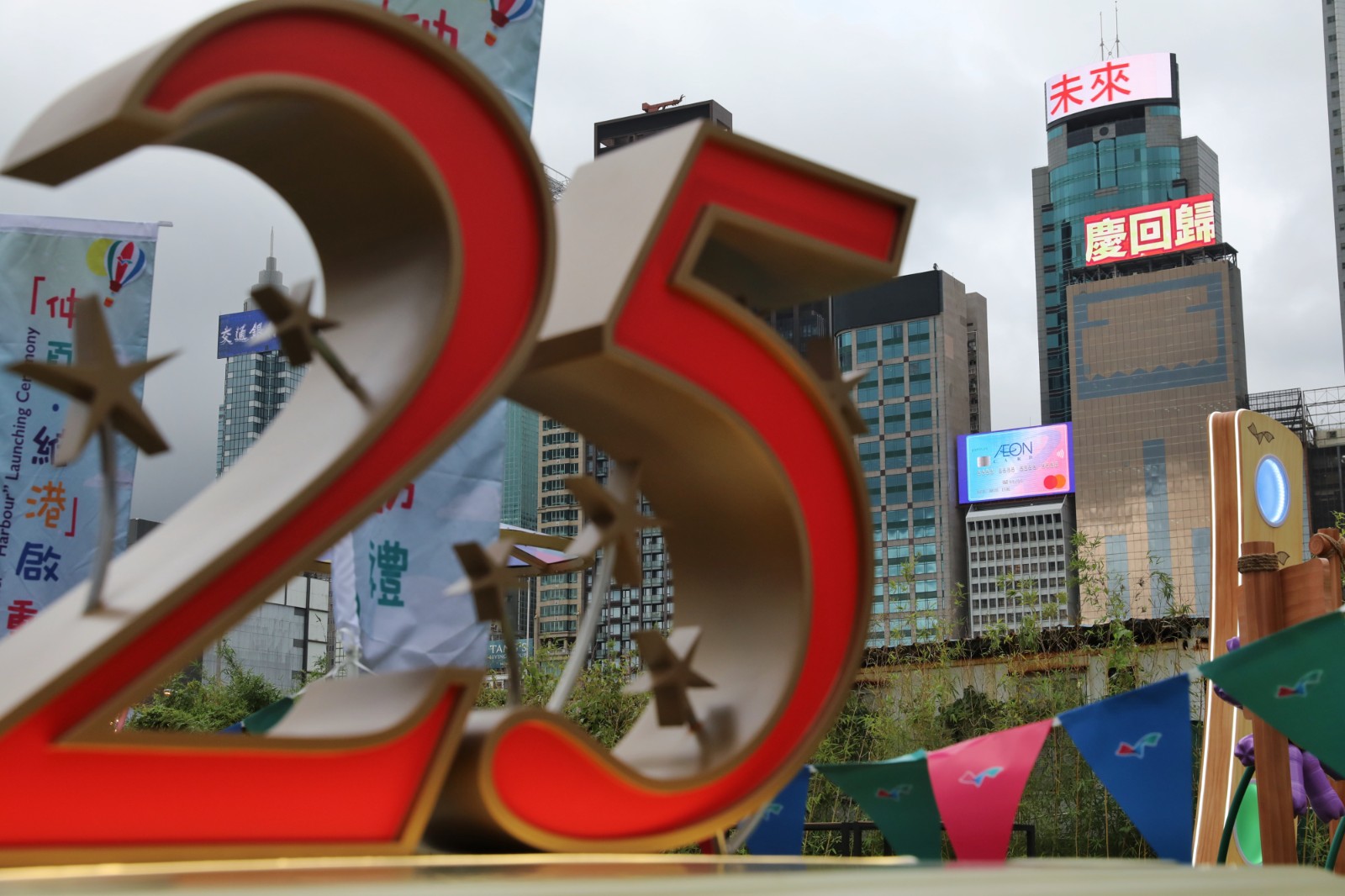 今年7月1日是香港回歸祖國25周年,隨着日子漸近,近日,香港大街小巷都可見慶祝回歸的標語和廣告,到處洋溢著喜慶的氣氛。(圖源中通社)