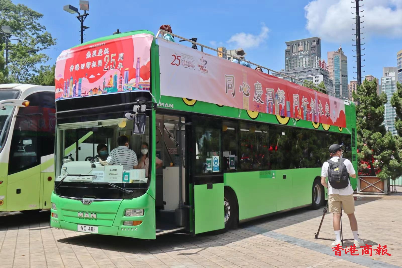 另外,25輛特別版巴士、10輛特別版電車聯合25艘懸掛國旗區旗的大型漁船亦在維港進行巡遊慶祝,寓意在中央政府領導下,香港融入國家發展大局,共同走向新時代的征程。(記者 李銘欣 攝影 馮瀚文)