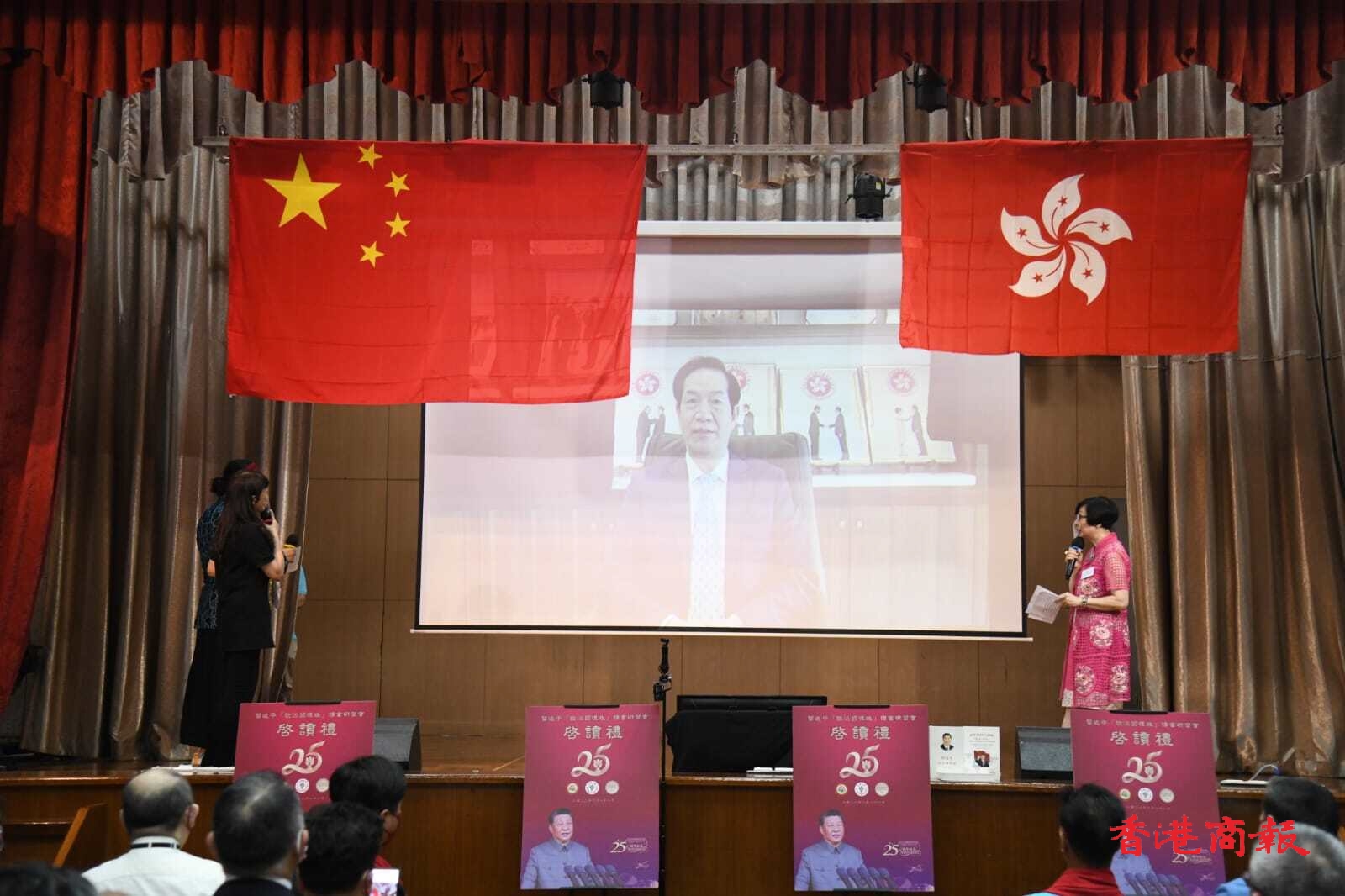 由讀書會舉辦的習近平「談治國理政」讀書研習會暨慶祝香港回歸祖國25周年活動,今日(28日)於元朗大會堂圓滿舉行。出席主禮嘉賓包括全國僑聯副主席盧文端、全國政協委員梁志祥、候任民政及青年局事務局局長麥美娟、立法會議員鄧家彪、元朗區議會主席沈豪傑等,有近百人出席活動。
