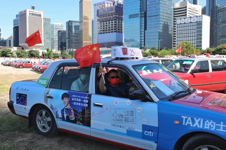 上午10時至12時半,3組各由26部的士組成的車隊,掛上國旗,貼有「1997」至「2022」字樣和「慶祝回歸25周年」海報,分別在香港島、九龍半島、新界三地進行環繞大巡遊,讓市民感受到熱烈的慶祝氣氛。