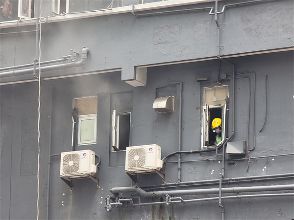 消防員接報到場,升起升降台向起火單位射水,並派出一隊煙帽隊進入火場灌救,約半小時後將火救熄,期間消防員為住客戴上氧氣頭罩協助疏散。