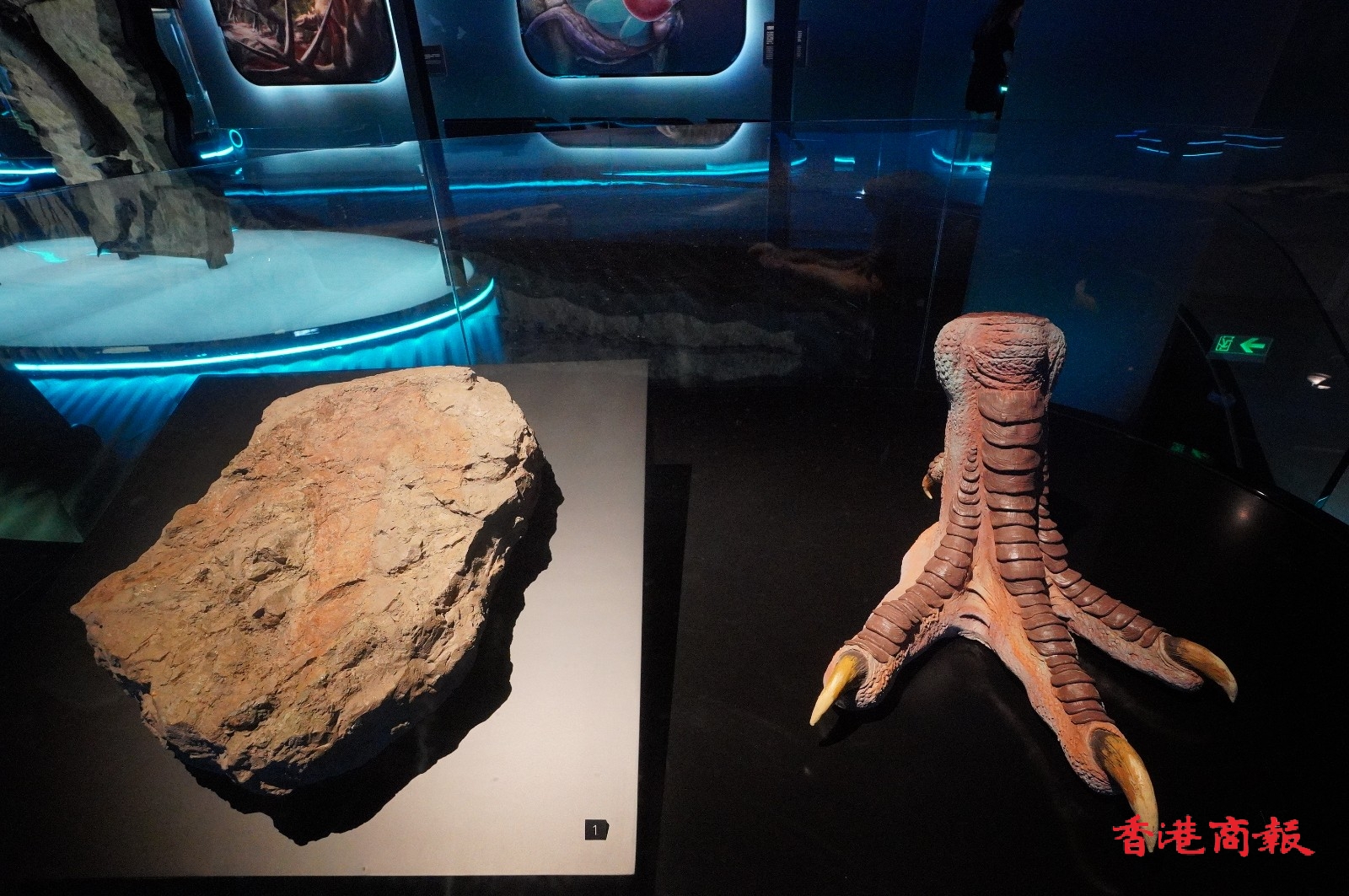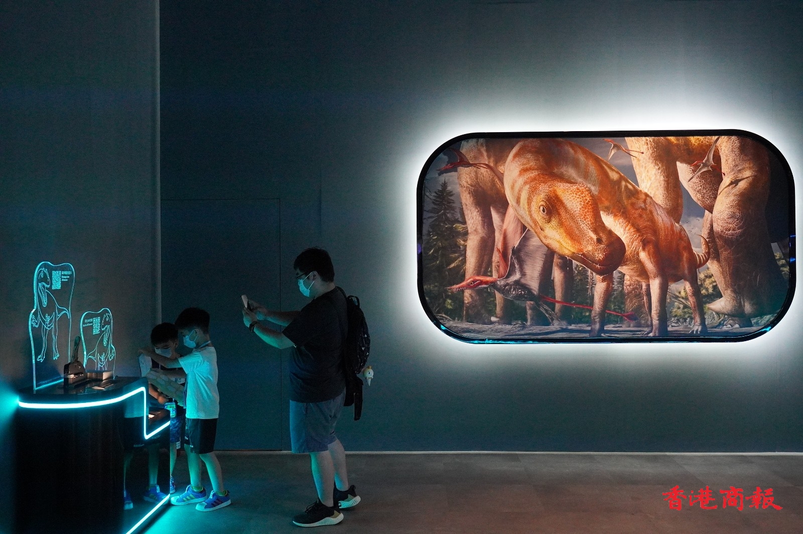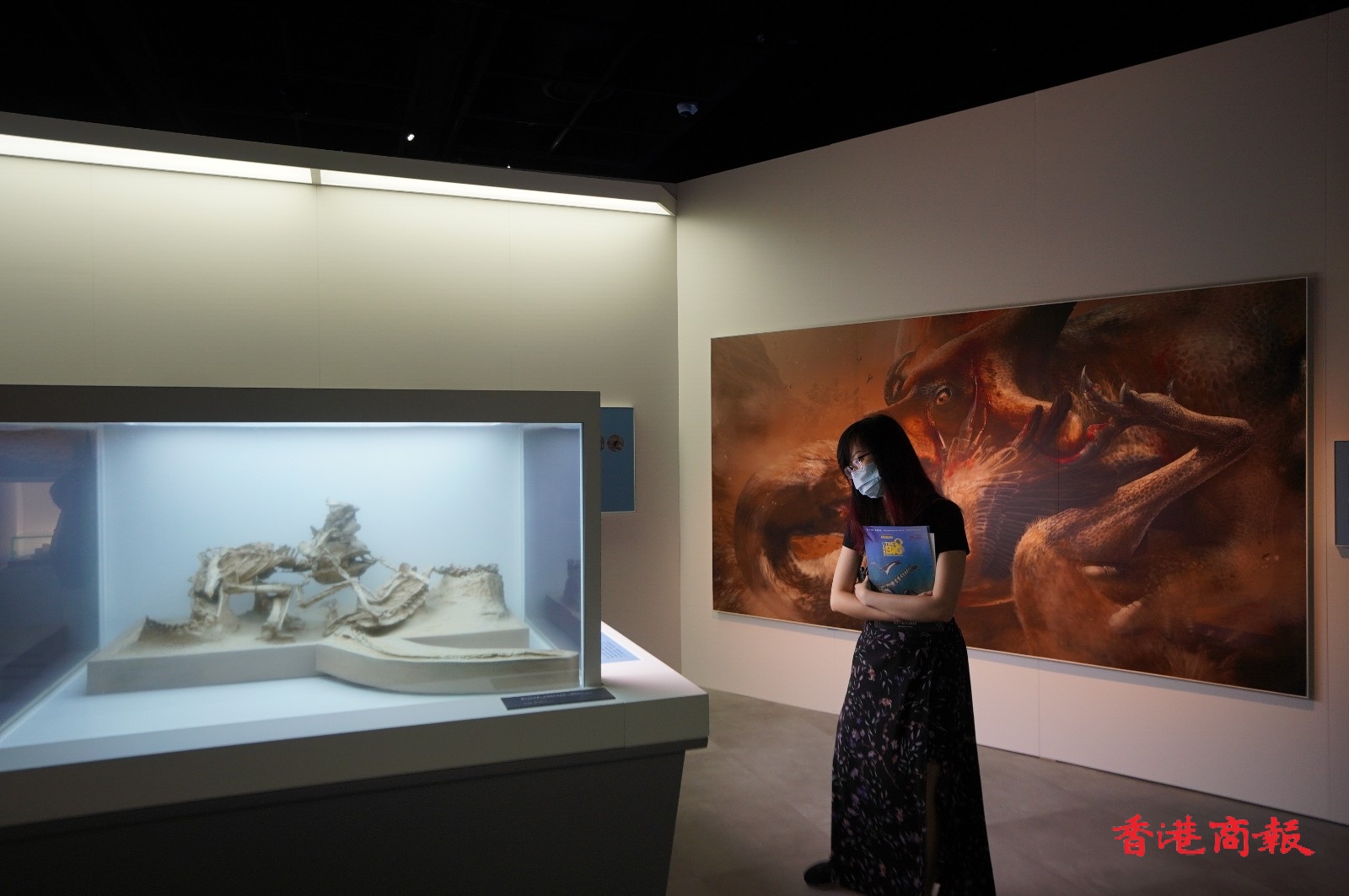 香港科學館今日(5日)舉行「香港賽馬會呈獻系列:八大‧尋龍記」展覽預展。是次展覽展出八組最具代表性和高完整度的化石骨架、化石真品。館方運用了多媒體投射技術,融合了科學研究和藝術插圖,重塑獨一無二的精彩場景,讓參觀者有如身臨其境,與恐龍會面。