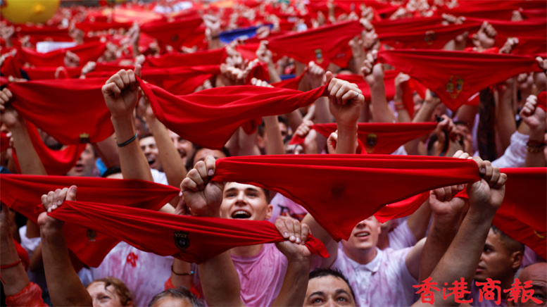 在西班牙潘普洛納,為期9天的聖費爾明節今天(6日)正式開始,數以千計的身穿白色衣衫的人們在城市大廳前的廣場上聚集,將手中拿着的鮮紅聖費爾明圍巾舉過頭頂,城市代表在市政府點燃煙火宣告節日的開始,也點燃了人們的熱情。大家則迅速將手中的圍巾紮在頸上,接着眾人齊唱傳統歌曲。