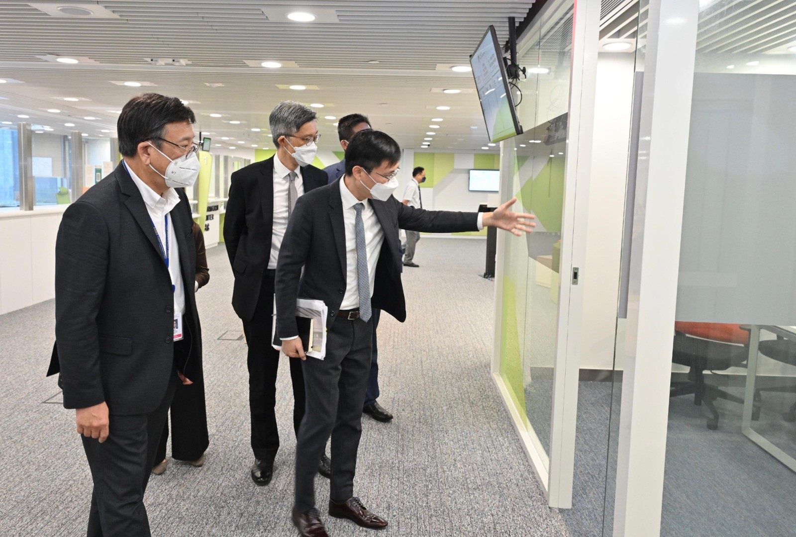 丘應樺在署理工業貿易署署長何兆康陪同下,到訪工貿署綜合顧客服務中心。該中心於今年五5月啓用,提供資訊查詢和各項牌照申請及登記的一站式服務。他其後參觀中小企業支援與諮詢中心,聽取工貿署人員講解部門對中小企業的支援措施,尤其是疫情期間的網上支援服務。