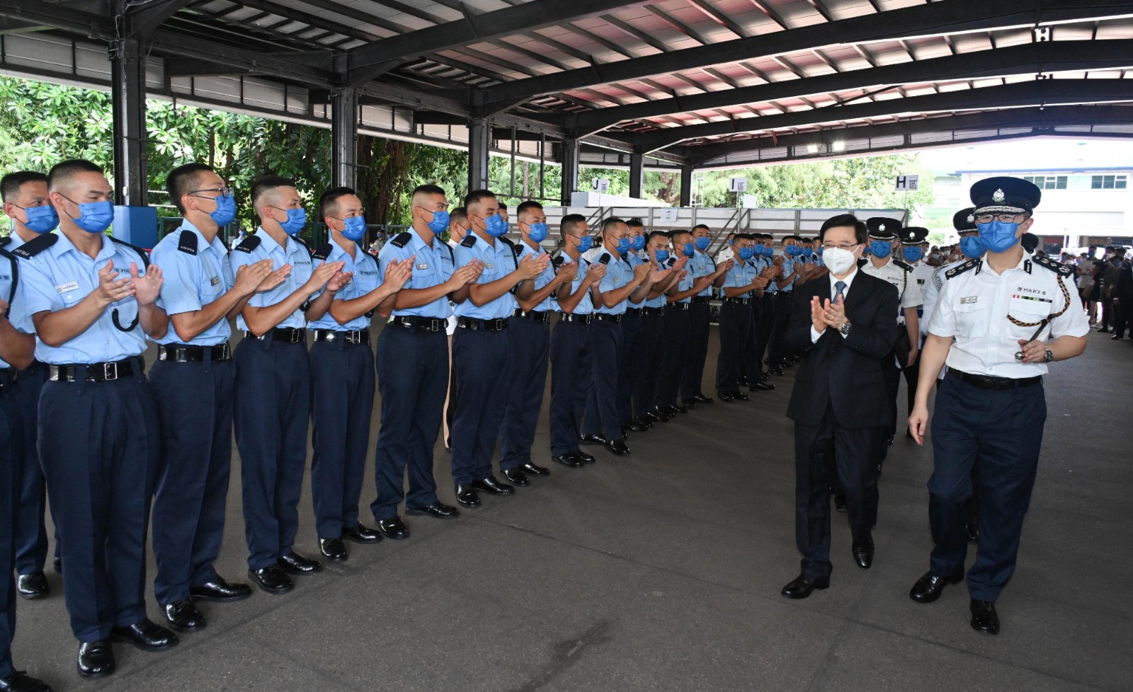 香港警察學院今日(9日)舉行結業會操,行政長官李家超擔任檢閱官,見證一眾結業學員經過千錘百煉,成為警隊的生力軍。李家超致辭時肯定警隊工作,他表示,2019年香港社會遭受黑暴、「港獨」及外國勢力衝擊,危害國家安全及香港安全,但警隊一直堅守崗位,克盡己任;國安法實施後,香港回復安全和大致穩定,警隊繼續發揮力量,去年罪案趨勢已穩定下來。認為香港警隊已由城巿治安警察發展成為一支維護國家安全及香港穩定的執法力量。他感謝警隊守護香港。