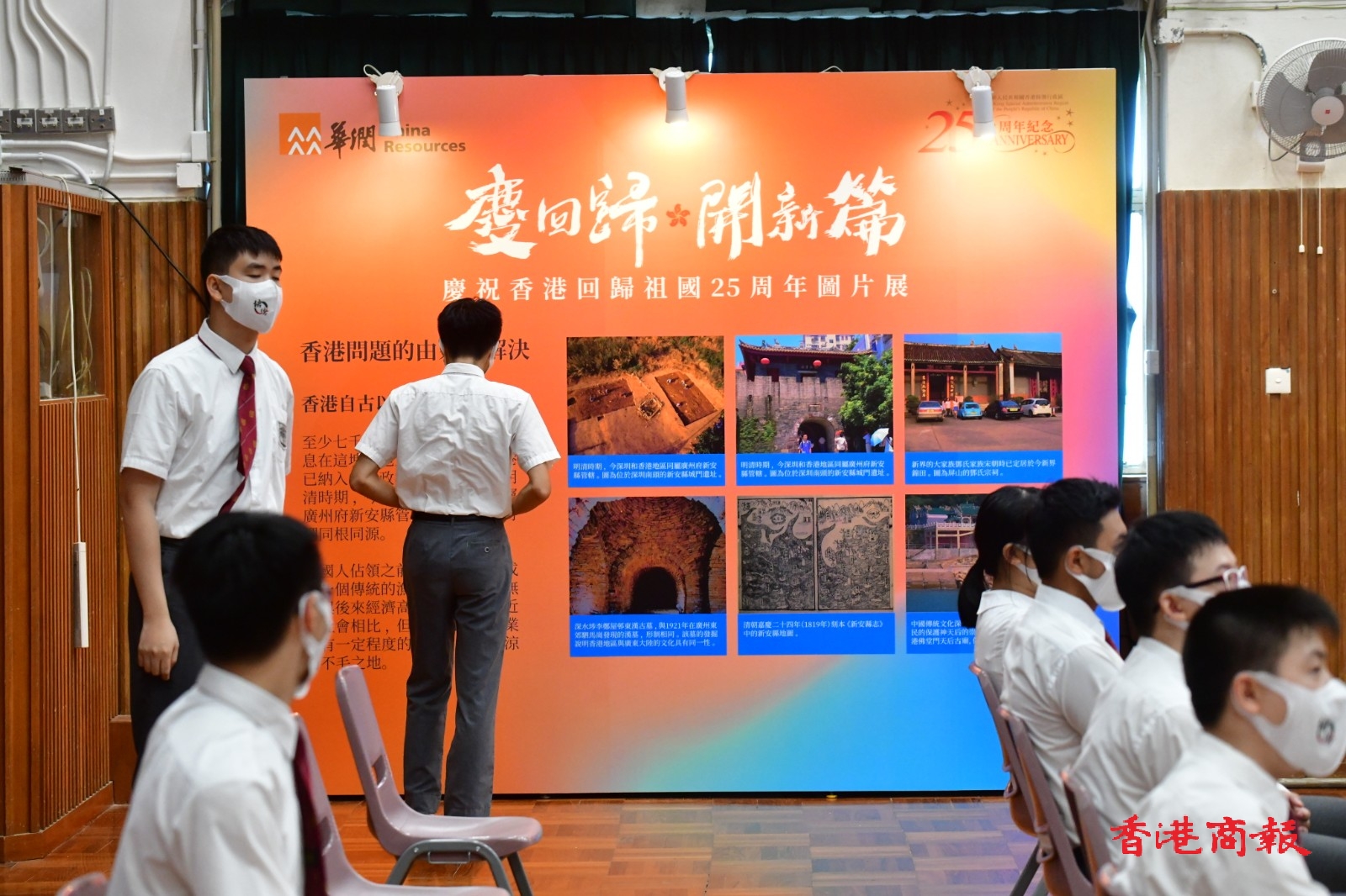 本次展覽深入中小學校園,面向基層青少年,以電子屏展覽的形式,循環播放圖片。展覽設置多個板塊 ,從「香港問題的由來及解決」到「香港回歸祖國25年來的歷史記憶」,多方面展現25年來的重大歷史事件,突出香港在國家的支持下取得舉世矚目的發展成就,「一國兩制」得以行穩致遠等。(記者 崔俊良攝)