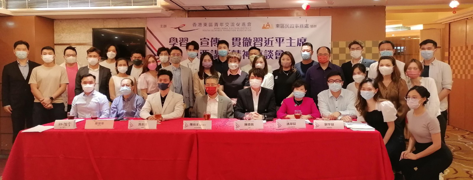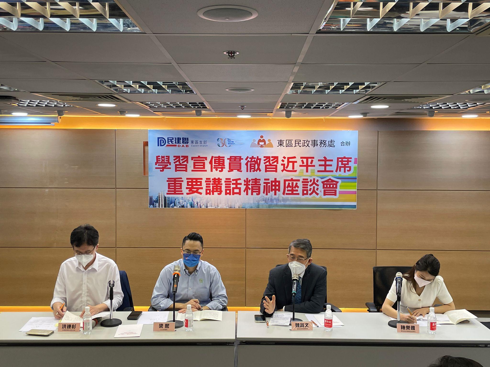 東區民政事務處繼7月13日舉行座談會後,昨日(17日)與香港東區青年交流促進會在北角合辦「慶祝香港回歸祖國25周年暨學習、宣傳、貫徹習近平主席重要講話精神座談會」。由東區民政事務專員陳尚文及香港東區青年交流促進會永遠名譽會長馮翠屏作主講嘉賓,並與與會青年交流。約40人出席座談會。此外,東區民政事務處於7月16日與民主建港協進聯盟(民建聯)東區支部,在炮台山舉辦「學習貫徹習近平主席重要講話精神座談會」,由立法會議員梁熙及東區民政事務專員陳尚文任主講嘉賓,並與共約100名地區人士及青年交流。