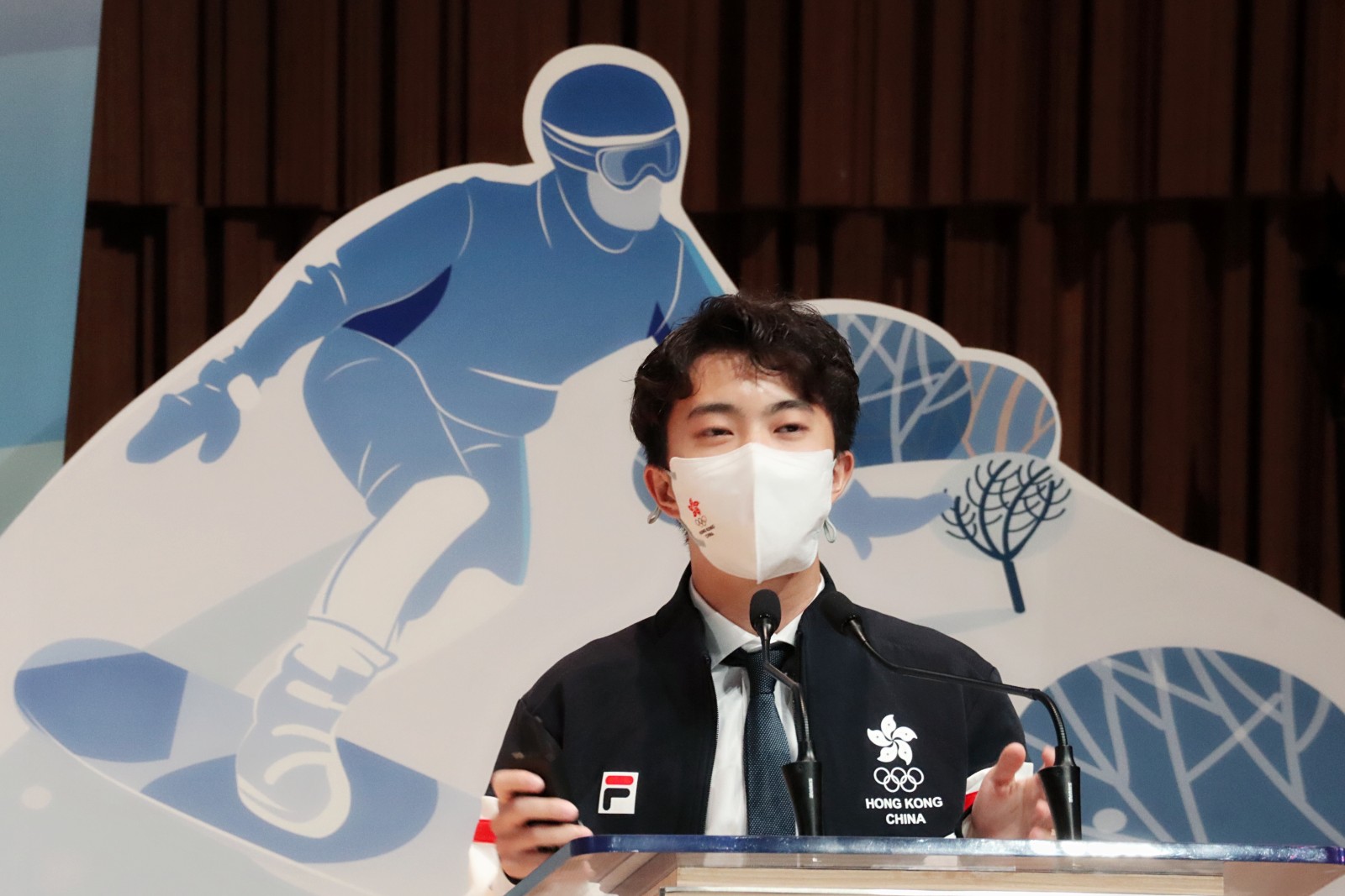 北京冬奧會中國香港代表團持旗手暨短道速滑選手朱定文。