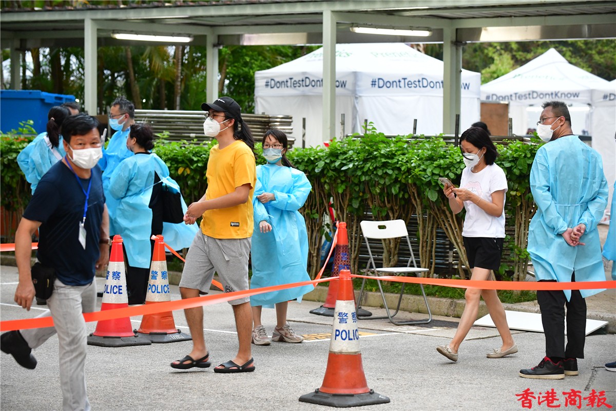 除了上述指明人士外,任何於7月22日至7月28日期間曾身處上述大廈內超過兩小時的人士,即使在「相關宣告」開始生效時不在「受限區域」內,亦須在7月30日或之前接受強制檢測。由於涉及變異病毒株,審慎起見,已接種疫苗以及近日已進行檢測的人士仍須接受檢測。(崔俊良/攝)