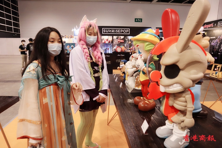 一年一度香港動漫電玩節今天(29日)起一連五日假灣仔會展舉行,場內有逾500個參展攤位及200多個同人區參展攤位,匯集各類最新動漫、電玩、潮玩、NFT產品及多項精彩表演活動,吸引不少動漫迷趁此機會「朝聖」和購買心頭好。此外,不少身穿動漫人物服飾的人士,花心思以一絲不苟的裝扮盛裝赴會,吸引不少市民圍觀拍照。(記者 馮瀚文攝)