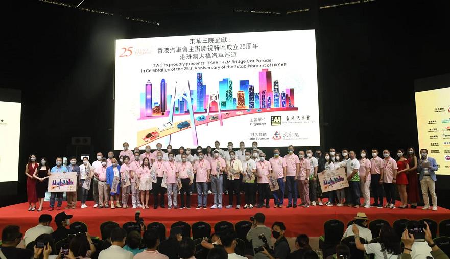 香港汽車會會長李耀培發言時稱,這次活動既是慶祝回歸25周年,亦是宣揚香港、珠海、澳門三地一心,期望疫情過去及通關後,巡遊路線能夠延伸至珠海和大灣區。(記者 馮煒強)