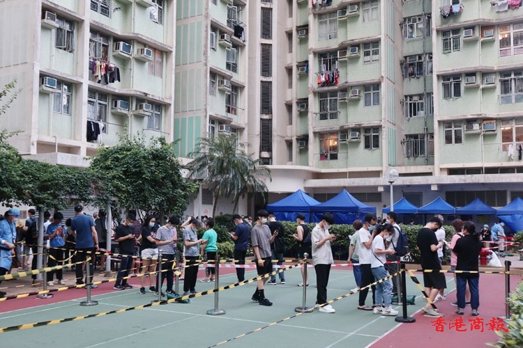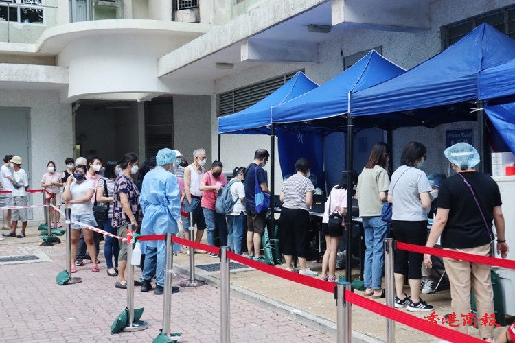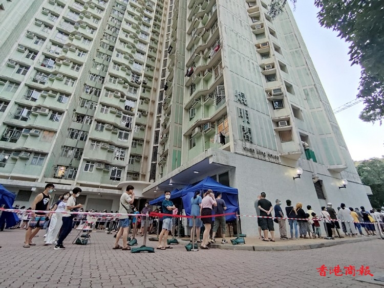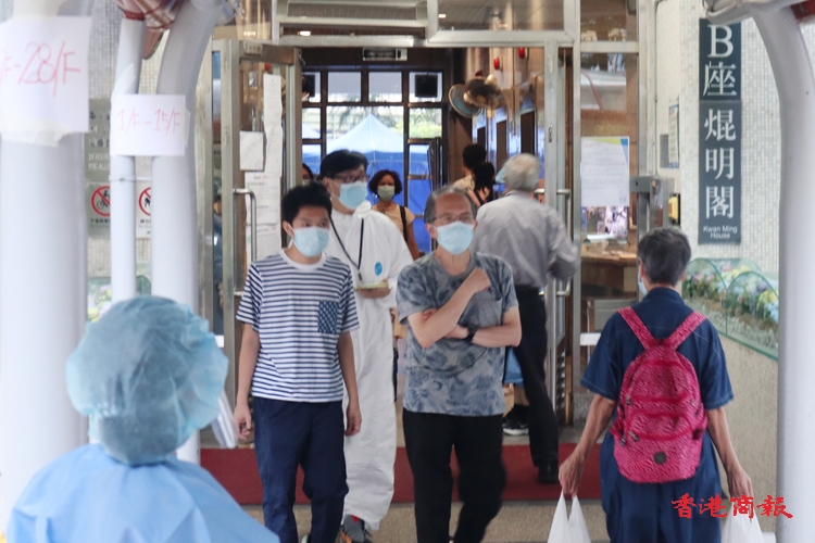 除了上述指明人士外,任何於2022年7月26日至8月1日期間曾身處上述大廈內超過兩小時的人士,即使在「相關宣告」開始生效時不在「受限區域」內,亦須在2022年8月3日或之前接受強制檢測。由於涉及變異病毒株,審慎起見,已接種疫苗及近日已進行檢測的人士均仍須接受檢測。(馮瀚文/攝)