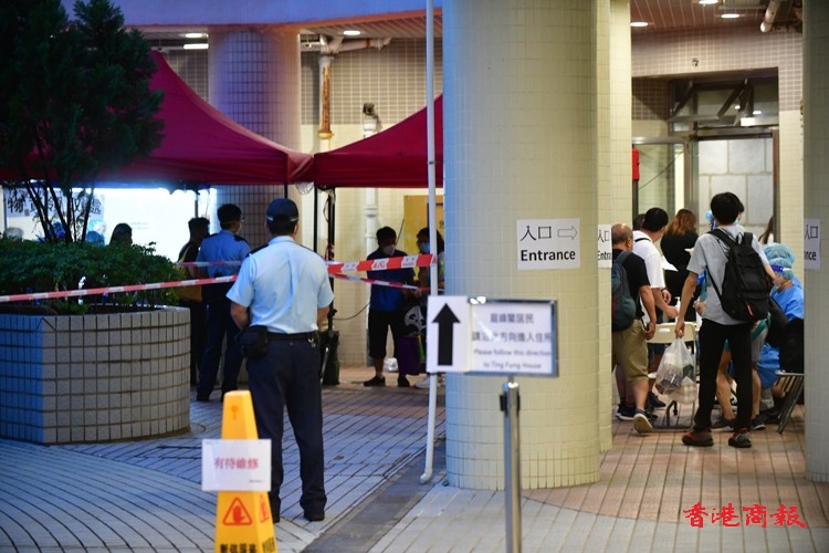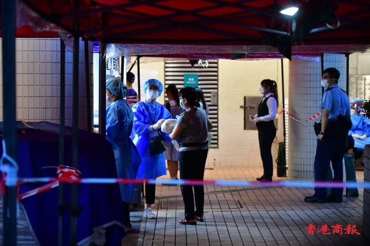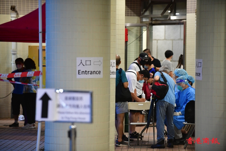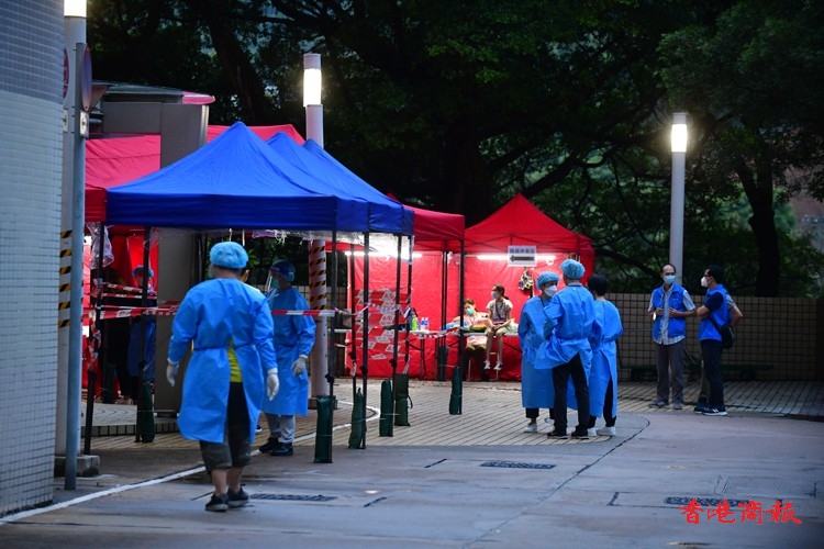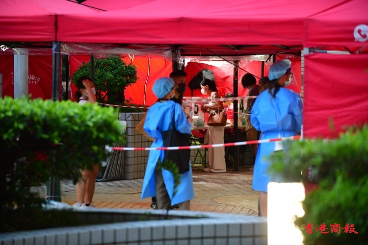 根據今日發出的強制檢測公告,除了上述指明人士外,任何於今年7月28日至8月3日期間曾身處上述大廈內超過兩小時的人士,即使在「相關宣告」開始生效時不在「受限區域」內,亦須在8月5日或之前接受強制檢測。由於涉及變異病毒株,審慎起見,已接種疫苗以及近日已進行檢測的人士仍須接受檢測。(崔俊良/攝)