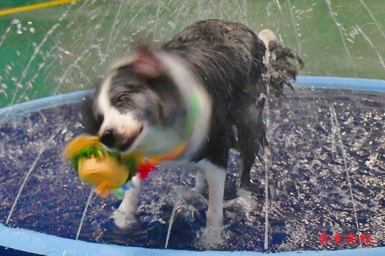 潑水節的重點的當然是「潑水」環節。除了「激FUN 水戰派對」,大會更為一眾毛孩增設「狗狗水戰派對」,有多個小水池、噴水裝置及沙灘主題打卡點,市民可以借用精美道具為毛孩打造夏日形象!(記者 馮瀚文攝)