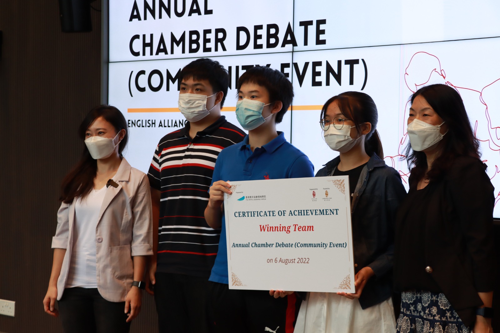 陳穎欣表示,辯論是生活和工作的一部分,希望其經驗能為在場年青人帶來鼓勵與啟發。她對年青人作出三個期許,第一,希望青年人能對辯論保持熱誠。第二,在學會了辯論技巧之後,希望青年人不只將技巧套用在日後與家人的爭吵上,而是有一天能傳承為國為港作貢獻的承擔,站在議會上,為心中所相信的理念作辯論,為社會帶來更好的改變。第三,希望青年人能學好語言及辯論技巧,應用到國際戰線上,代表國家應對外界不實的論點。