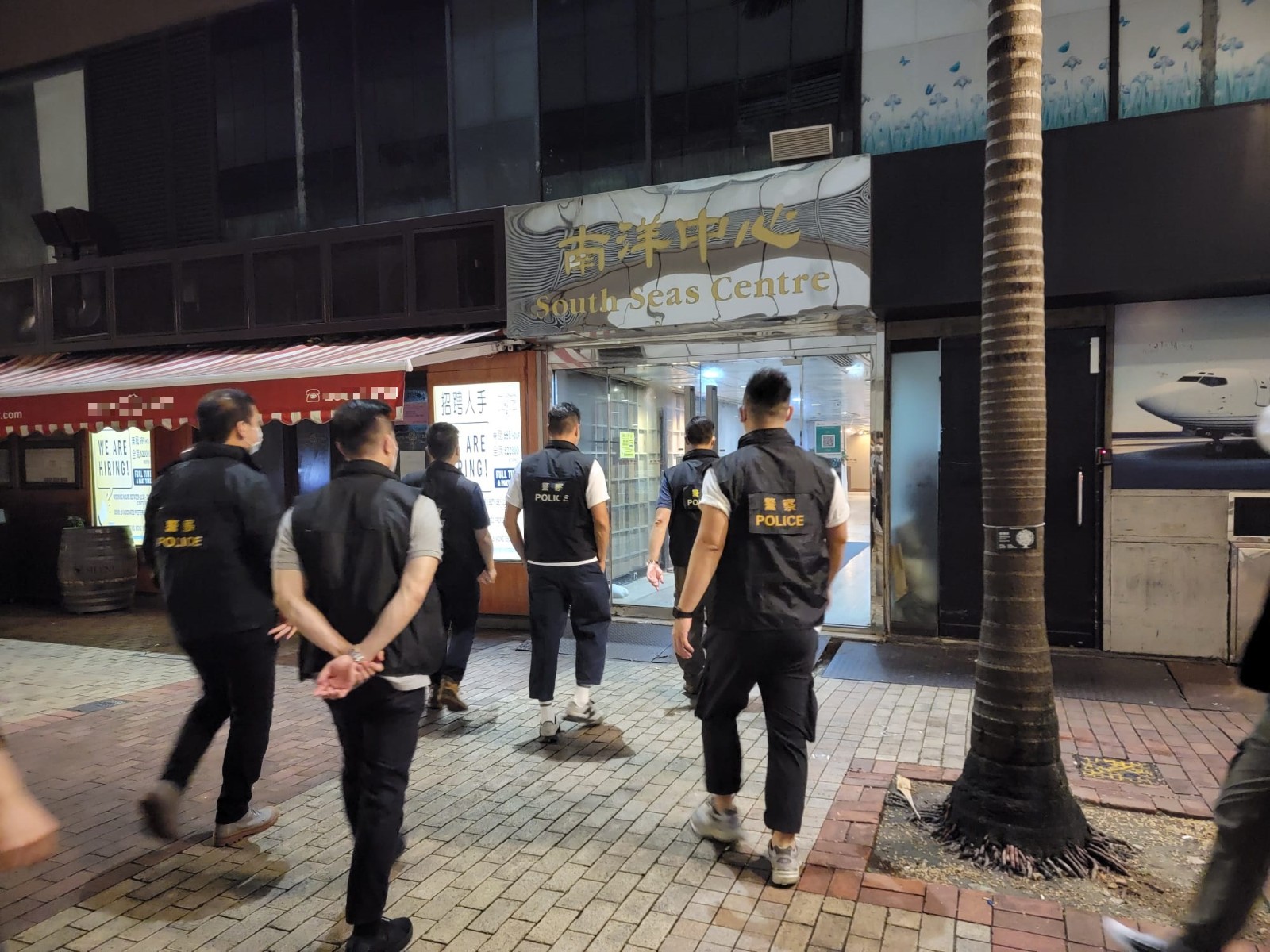 被捕包括54名本地男子、17名本地女子、1名內地男子、3名內地女子及5名非華裔男子,年齡介乎19至75歲,分別涉嫌「自稱三合會成員」、「刑事恐嚇」、「刑事毀壞」、「傷人」、「串謀意圖傷人」、「在公眾地方打架」、「誤導警務人員」、「抗拒警務人員」、「盜竊」、「以欺騙手段取得財產」、「以欺騙手段逃避法律責任」、「管有偽造身份證」、「管有他人身份證」、「管有製造虛假文書的設備」、「行使虛假文書」、「洗黑錢」、「普通襲擊」、「管有第一部毒藥」、「販運危險藥物」、「藏有危險藥物」、「管有工具可作吸食毒品用途」、「管理賣淫場所」、「經營賭博場所」、「協助經營賭博場所」、「在賭博場所內賭博」和「違反逗留條件」等罪名,以及違反禁業令和限聚令。其中兩人現正被扣留調查,其餘被捕人已獲准保釋候查,須於九月上旬向警方報到。