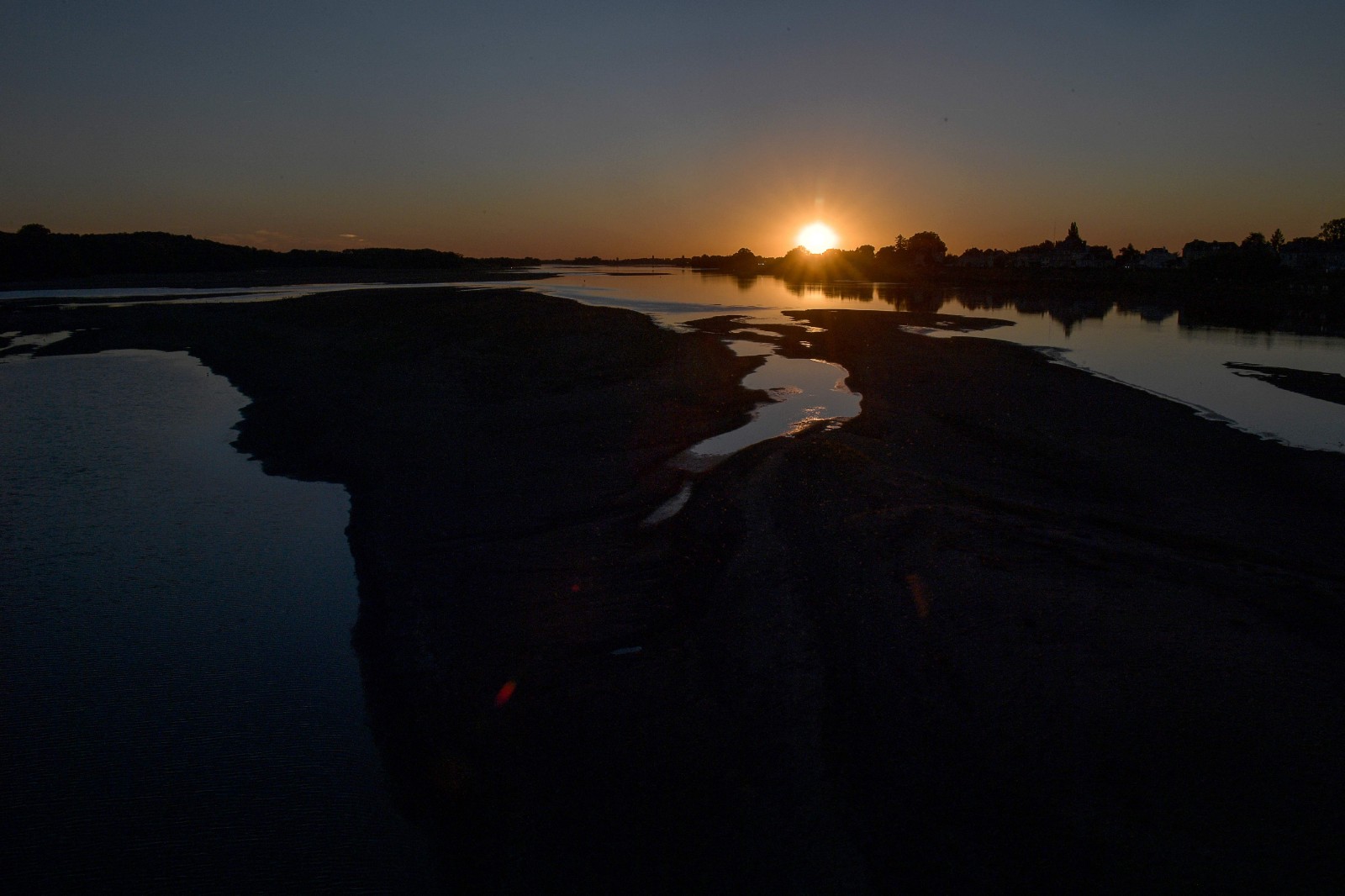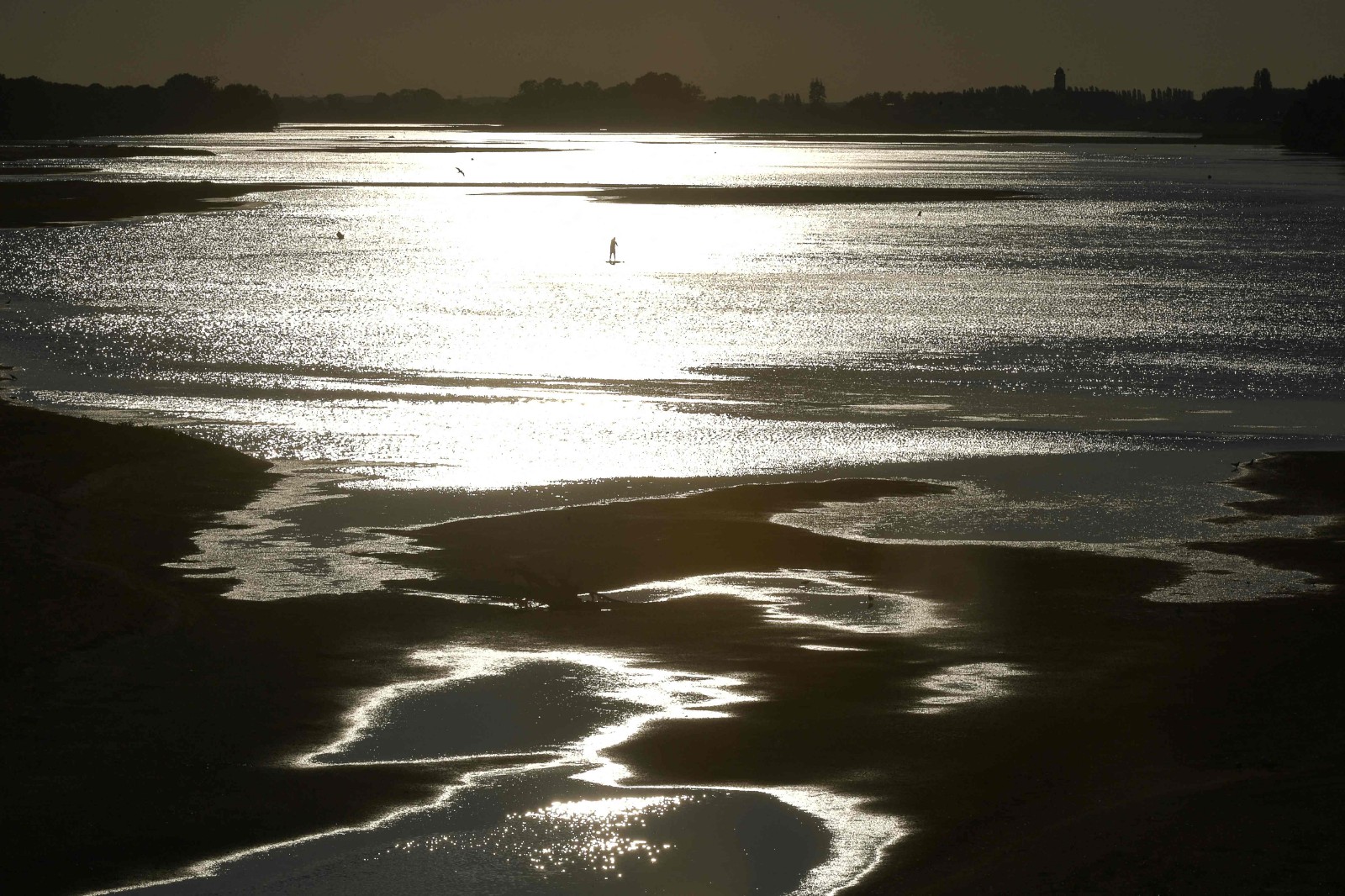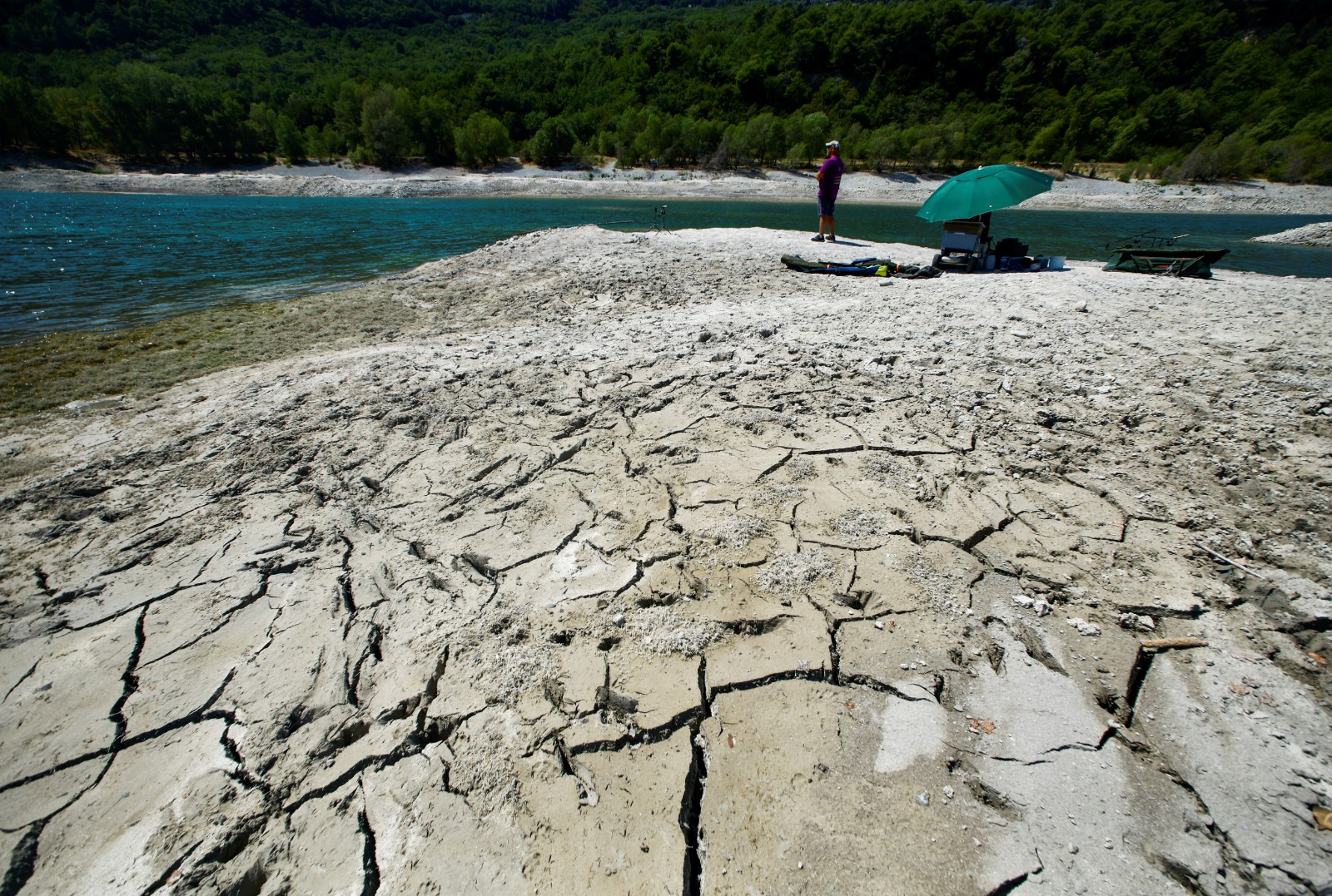 持續高溫下,法國盧瓦爾河水位下降,勒布羅克湖的河岸上土地龜裂。(圖源:新華社/法新、路透)