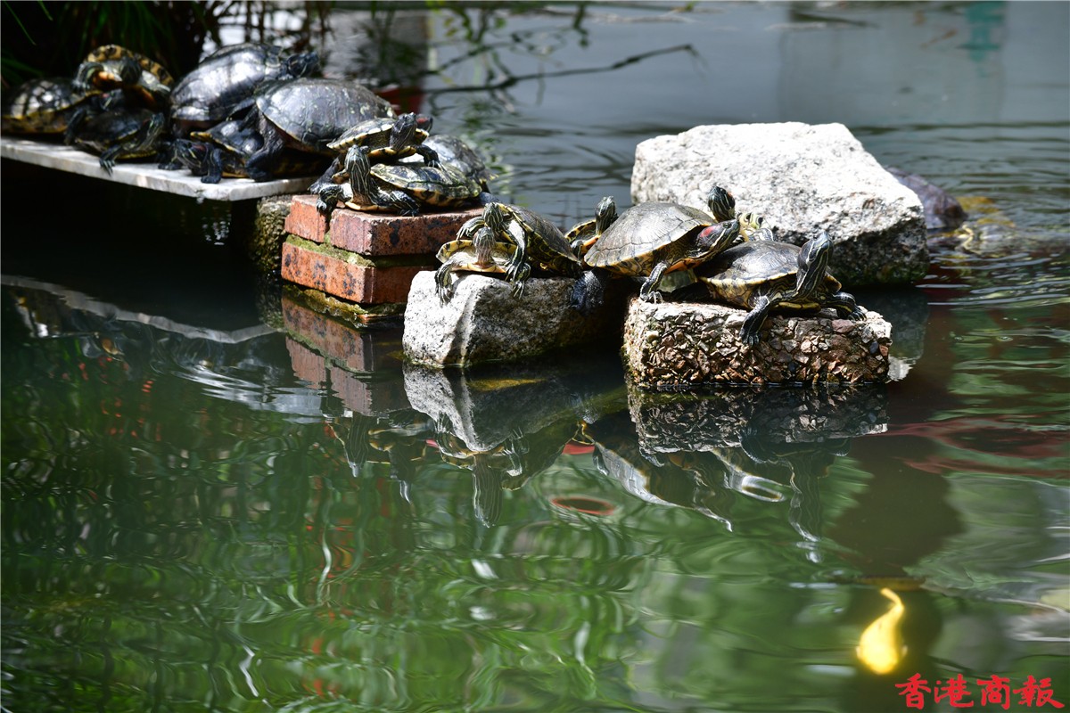 在公園中心的涼亭被中央水池包着,更有一條中式橋,邊散步邊欣賞池中魚,荷里活道公園可算是一個都市中的休閑加油站。(記者 崔俊良/攝)