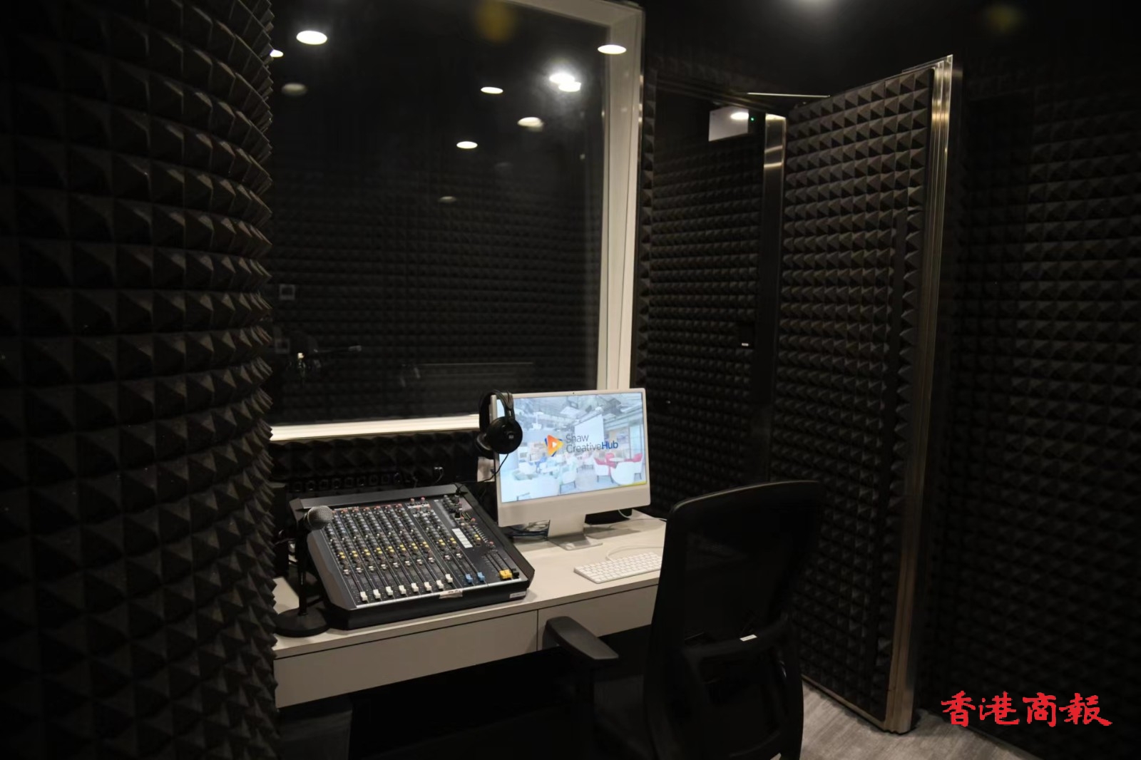 中心坐落於將軍澳邵氏影城,總面積佔地1.1萬平方呎,中心提供靈活的工作空間,如活動空間及會議室,並附設後期媒體製作設施,為本地創作人提供一站式製作支援。(蔡啟文/攝)