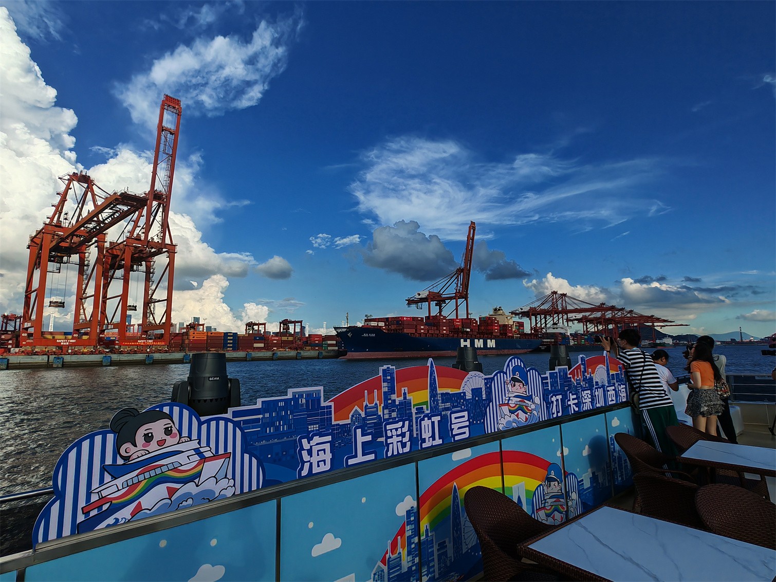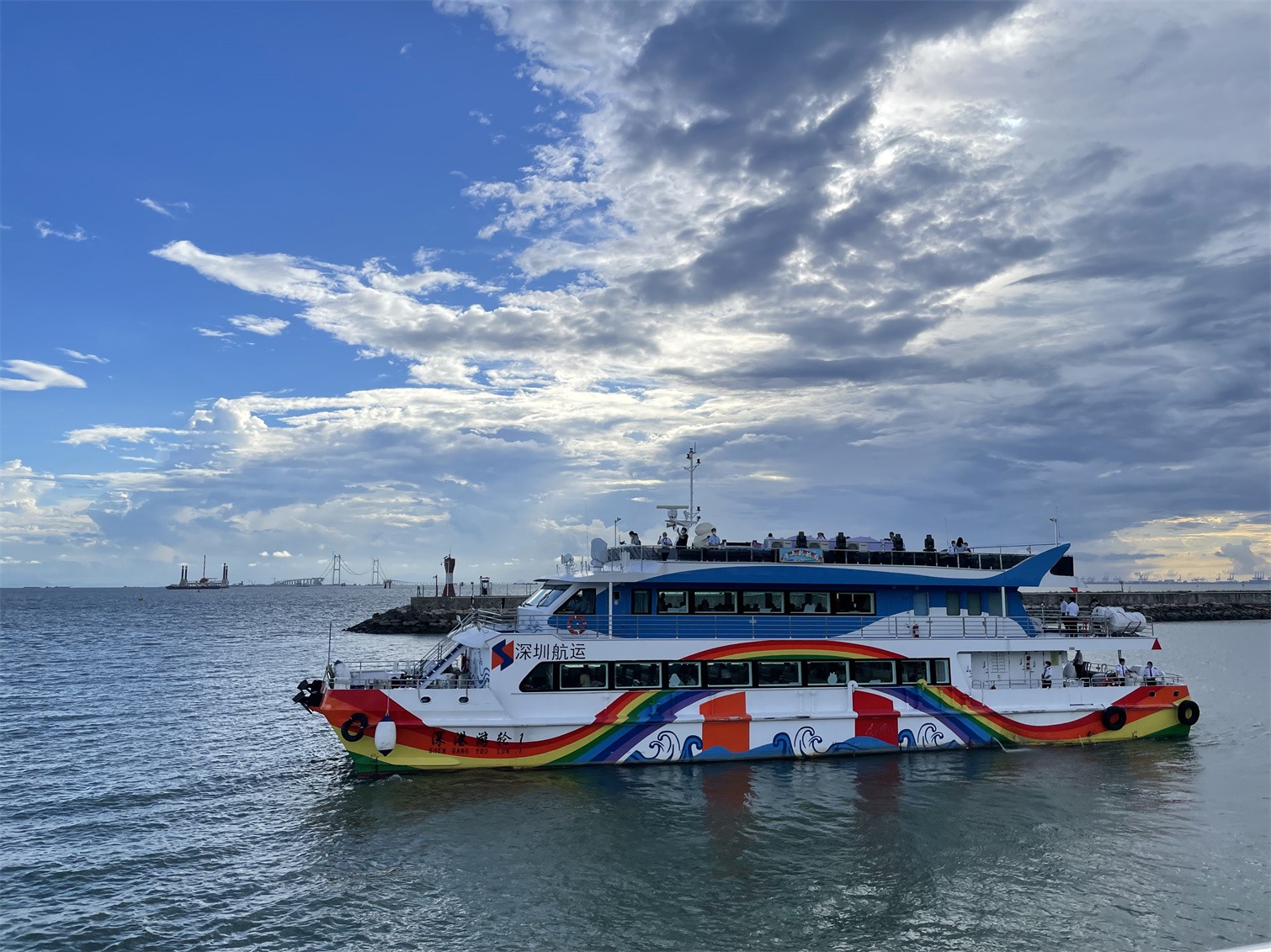 8月13日下午,「海上彩虹號」觀光船緩緩駛離深圳機場碼頭,標誌着寶安區暨深圳機場碼頭首條海上觀光航線「深圳機場碼頭至前海灣」正式開航。該航線是機場片區納入「大前海」後,深圳機場充分發揮自身區位和海陸空鐵綜合交通匯聚一體的優勢,融入「大前海」,聯手深圳航運集團挖掘空海特色旅遊資源進行的一次積極探索,助力完善以深圳為中心的大灣區海上休閒旅遊產品體系,滿足市民海上休閒、觀光需求的同時,為遊客提供了一個見證深圳和「大前海」快速發展的「海上窗口」,感受灣區之城欣欣向榮、蓬勃向上的發展之力。