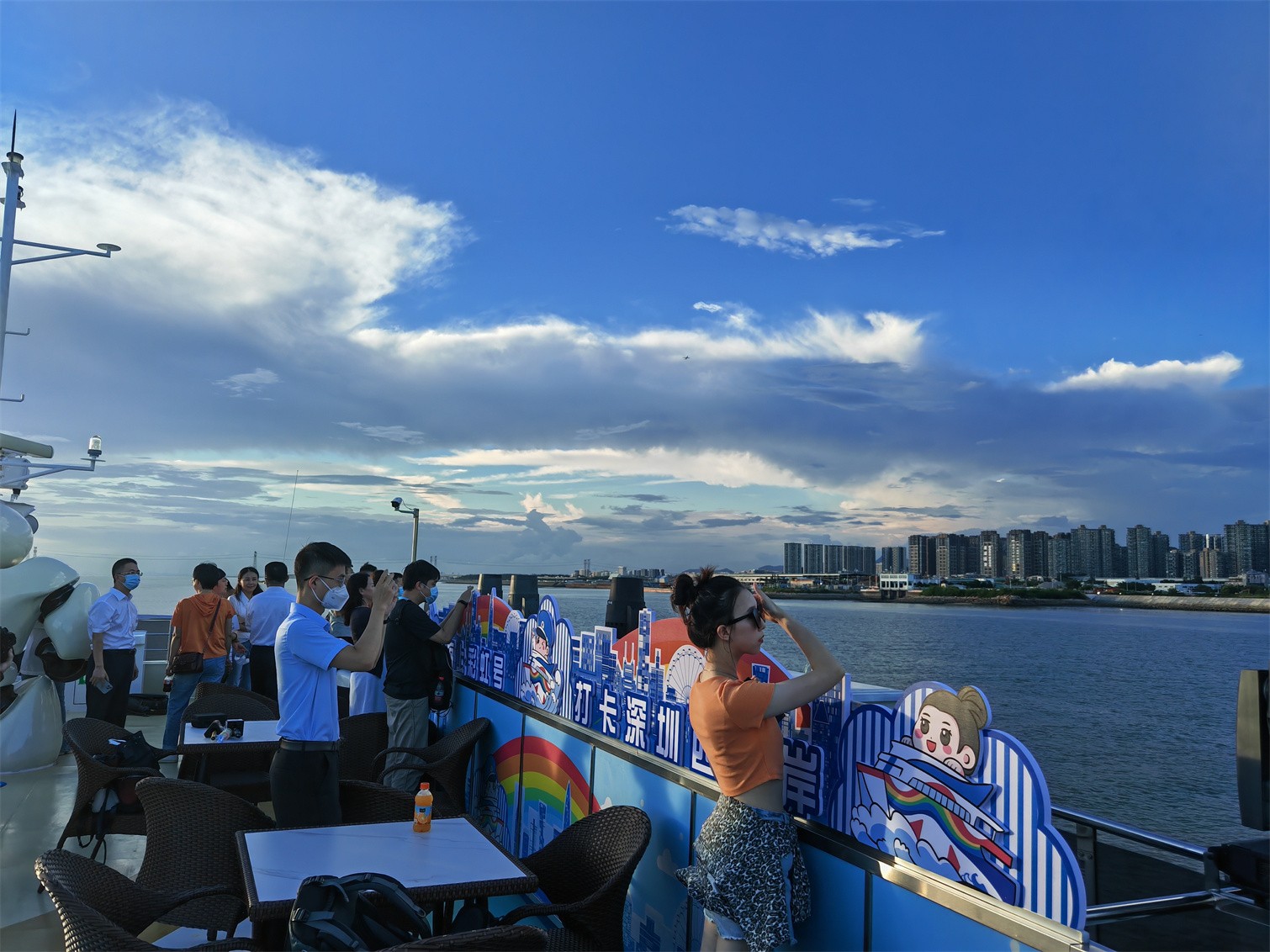 首航當天,夕陽西下、海風輕拂,嘉賓和遊客盡情飽覽黃昏下沿途海上風光,每當有飛機從空中飛過,大家紛紛拿出手機記錄空海「聯動」的特別景致。除了航線沿途無限風光之外,船上還有充滿文藝氣息的節目表演、妙趣橫生的互動遊戲,給遊客帶來了豐富多樣的休閒體驗,為深圳及周邊城市居民周末家庭休閒提供了新選擇。