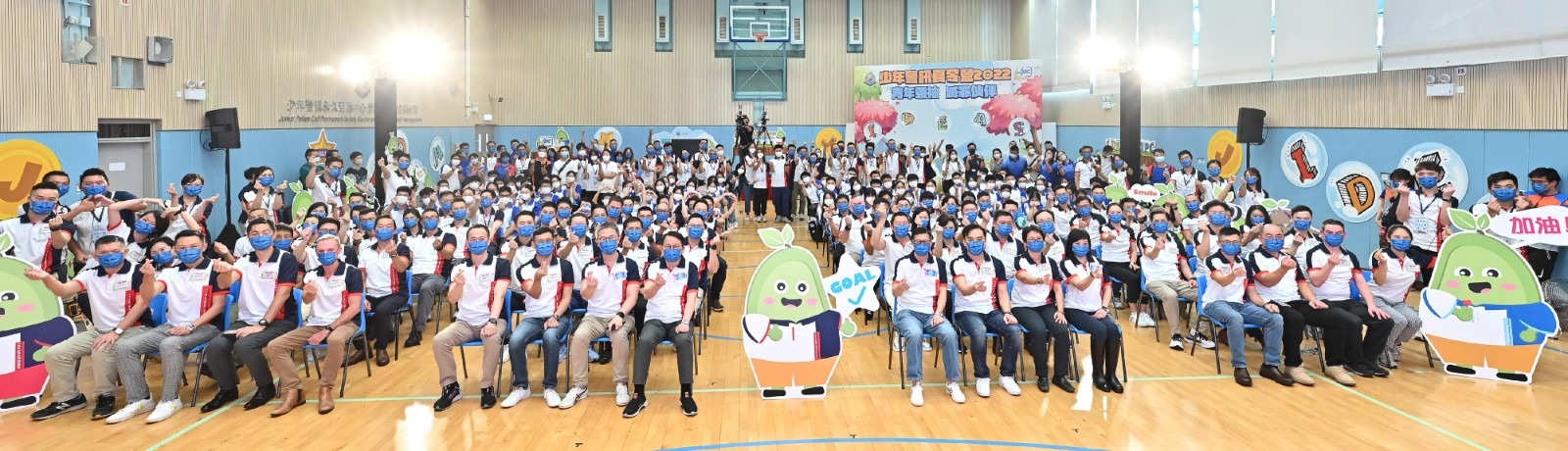 政務司司長陳國基、保安局局長鄧炳強及警務處處長蕭澤頤,今日(16日)到八鄉少訊中心主持「少年警訊夏令營2022」開展禮。