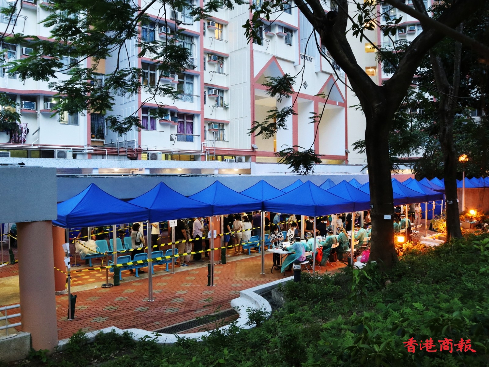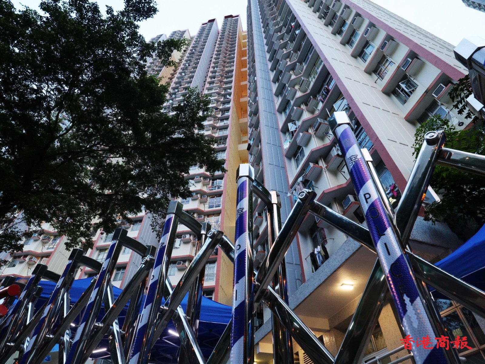 觀塘翠屏(南)邨翠榮樓被圍封,居民要接受強檢現場情況。記者 馮瀚文攝