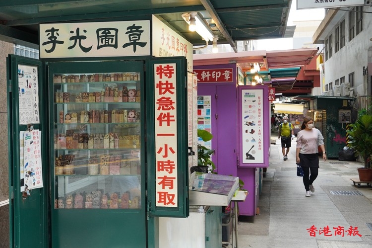 位於文咸東街及干諾道中之間、俗稱「圖章街」的文華里,是專門製造圖章及名片的一條特色街道,過去吸引不少遊客慕名而來。