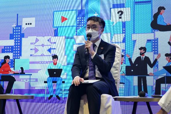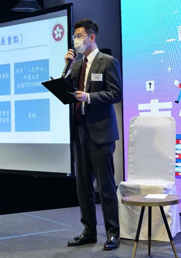其後,與會者就多項與學業有關的社會議題進行分組焦點討論。葵青區區議員郭芙蓉作為其中一個小組的主持人,帶領同學們就教育體系的公平性和實用性、政府可提供的支援等問題,展開了熱烈的討論。同學們根據自身經歷發表了許多非常接地氣的想法,通過不同觀點的交流和碰撞,又再衍生出新的更深刻的見解,為政府稍後公布的青年藍圖提供了豐富的參考素材。郭芙蓉表示,同學們明顯都是有備而來,自己已經離開校園多年,通過這次討論,能夠從同學們反映的第一手信息,對當前的香港教育問題有了更深刻的認識,有利於她今後在教育領域為青年爭取更多權益。