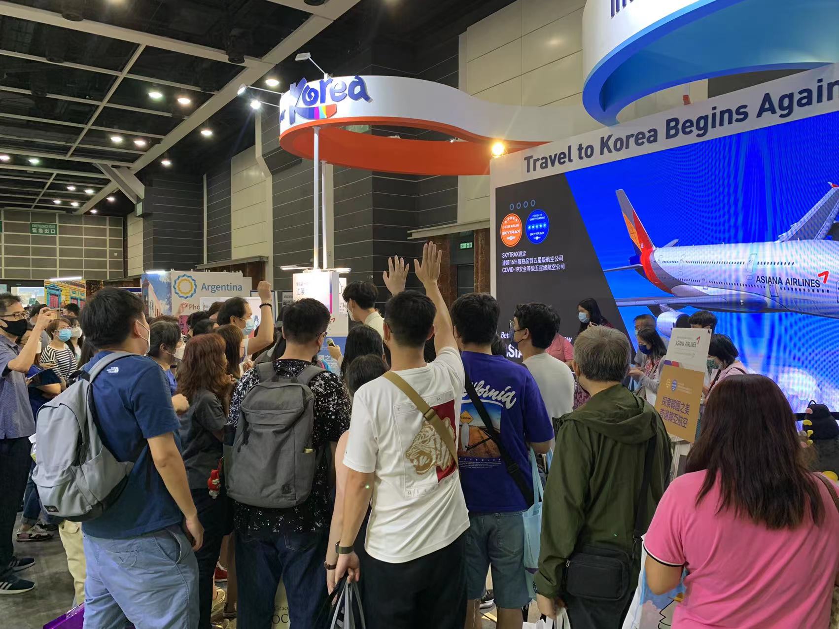 另有準備到韓國旅遊的市民趙小姐表示,是第一次來旅遊展,打算了解一下最新的資訊,因買了機票九月會去韓國。她又指,自己很喜歡旅遊,疫情前每年也會去,但受疫情影響困了在香港太久,又看到韓國免檢疫隔離就可入境,而香港現時的「3+4」檢疫亦較以前的七日更方便,便立即買機票。(記者 何加祺 蔡啟文攝)