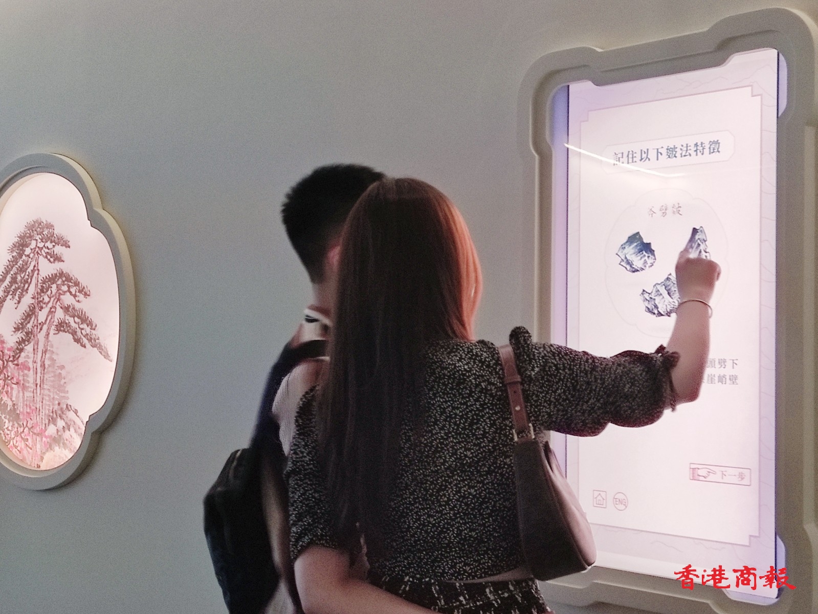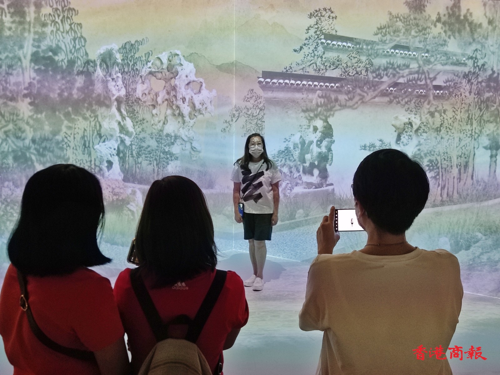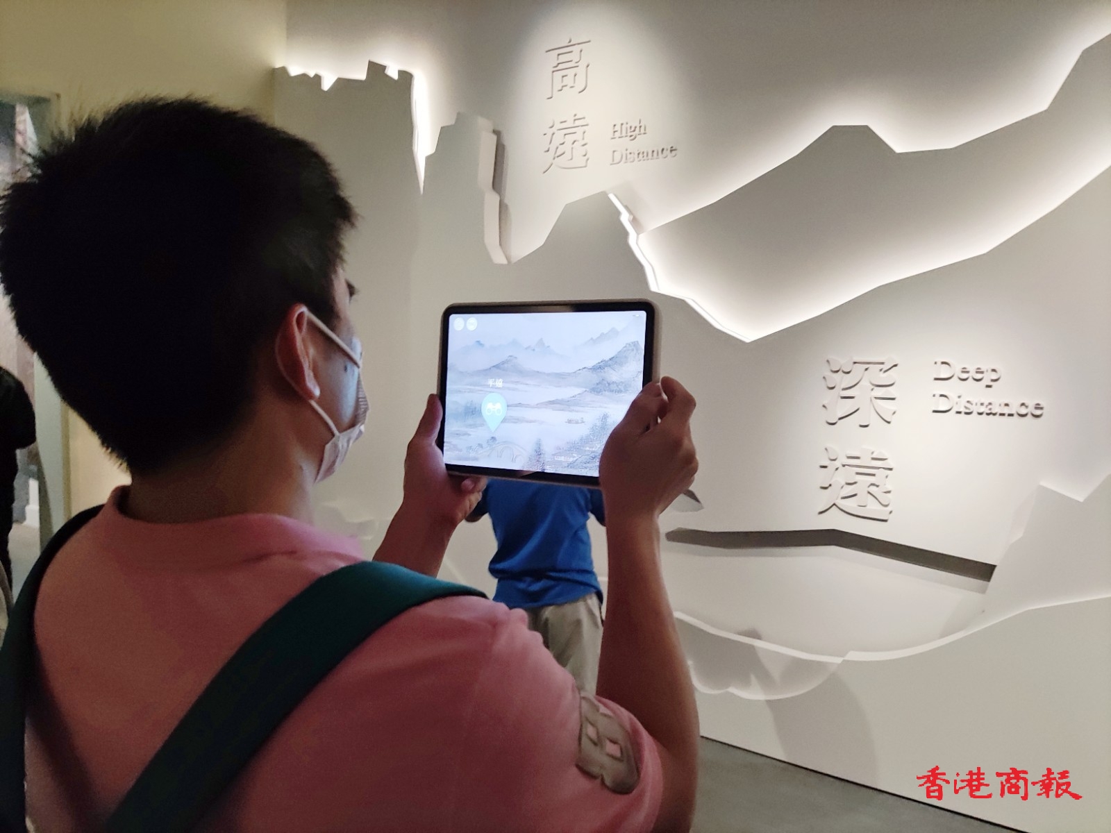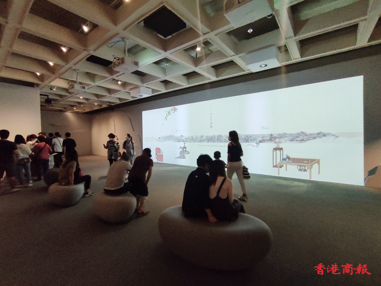 展覽把傳統結合科技,運用多個大型投影和聲效動畫裝置演繹多幅珍貴的書畫藏品,為觀眾帶來嶄新的視覺和聽覺體驗。透過科技,觀眾可以走進古代大師的山水世界,有如置身畫家的胸中丘壑,感受四季更替,探索各種用筆用墨的技法。(馮瀚文/攝)