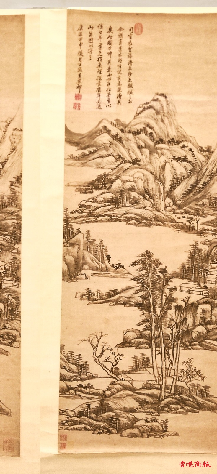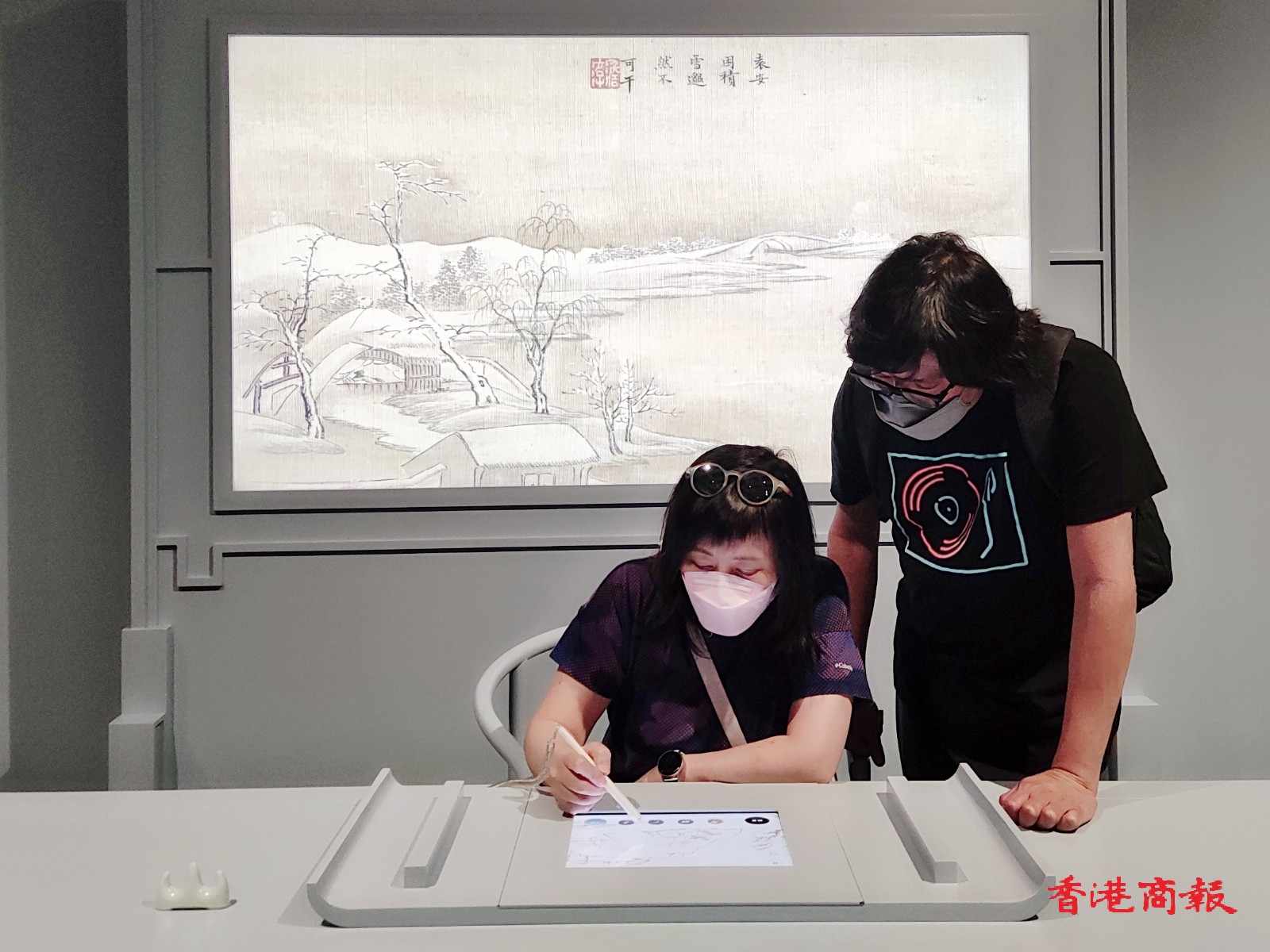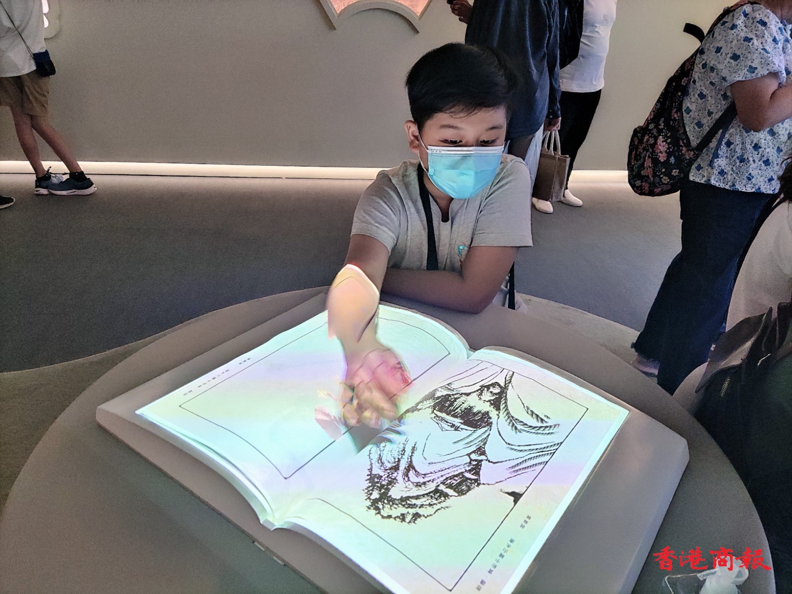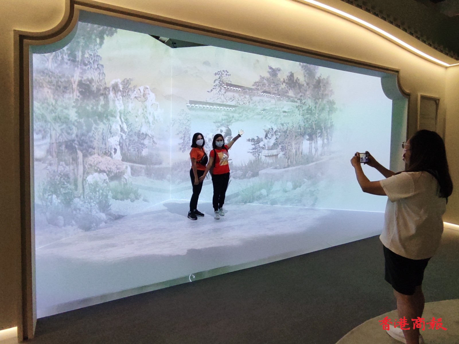 展覽把傳統結合科技,運用多個大型投影和聲效動畫裝置演繹多幅珍貴的書畫藏品,為觀眾帶來嶄新的視覺和聽覺體驗。透過科技,觀眾可以走進古代大師的山水世界,有如置身畫家的胸中丘壑,感受四季更替,探索各種用筆用墨的技法。(馮瀚文/攝)