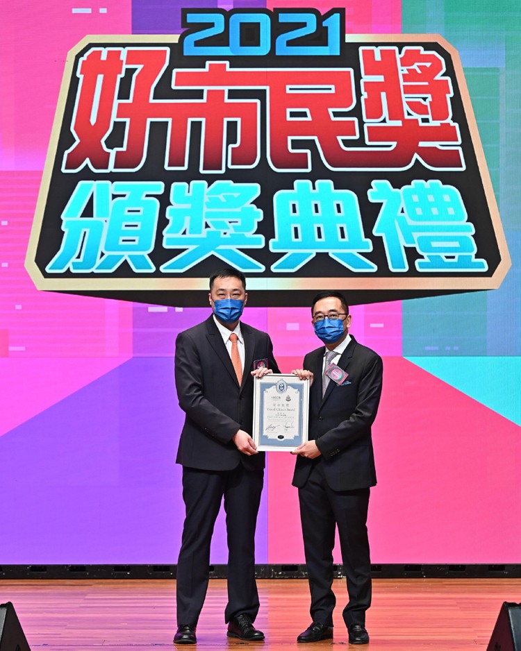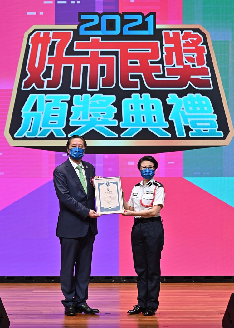 警務處今日(28日)在灣仔香港會議展覽中心舉行「2021年第二期好市民獎頒獎典禮」,嘉許40名協助警方撲滅罪行、維護法紀的好巿民,另有6間機構獲頒「好機構獎」,表揚他們協助警方推動保護兒童工作。