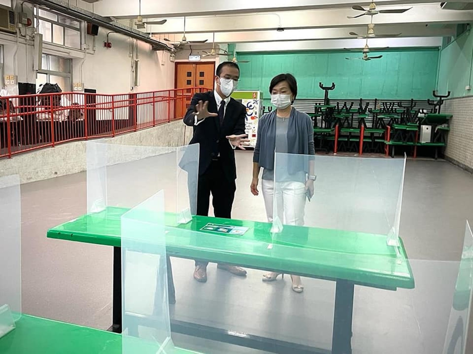 蔡若蓮在社交平台上載相片,顯示她在進校前先做好手部清潔,並掃描「安心出行」及「疫苗通行證」。她其後聽取校長黃婉芬介紹學校準備開學的情況,校方已全方位做好防疫抗疫工作,包括清洗及消毒校舍、設置搓手液及探熱儀器、制訂檢查及跟進快速抗原測試記錄措施、編排單向及單行座位,以及加裝飯堂隔板及各場地的抽氣扇等。
