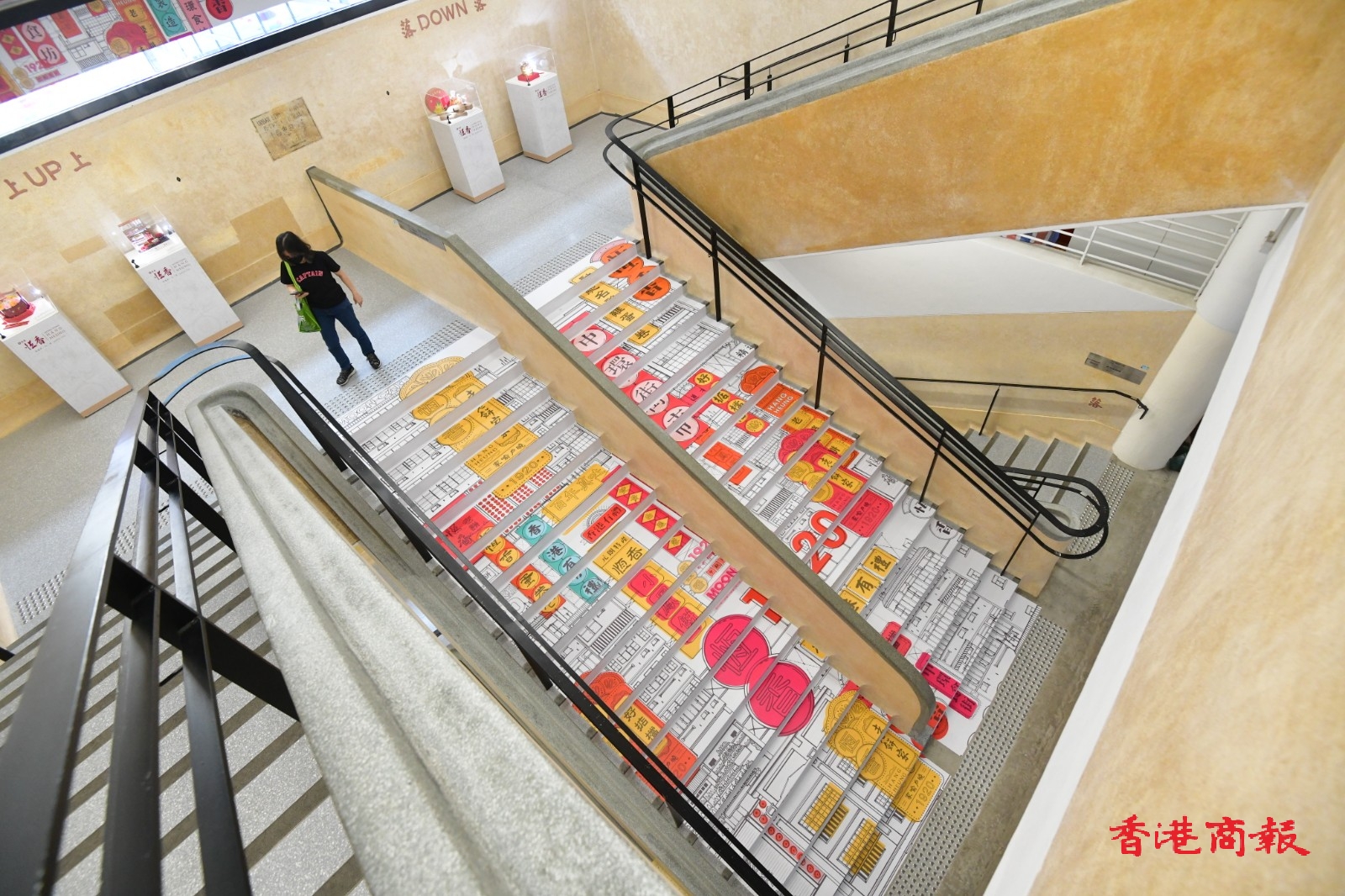 一棵掛了多個燈籠的許願樹,配有多隻可愛燈飾的光影兔,守在許願樹下互相輝映。在七彩繽紛的燈籠下,有兔相伴,也成為了打卡熱點。而中環街市的特色樓梯,每梯級也貼上特色創意設計,俯瞰下的確有另一番景致。