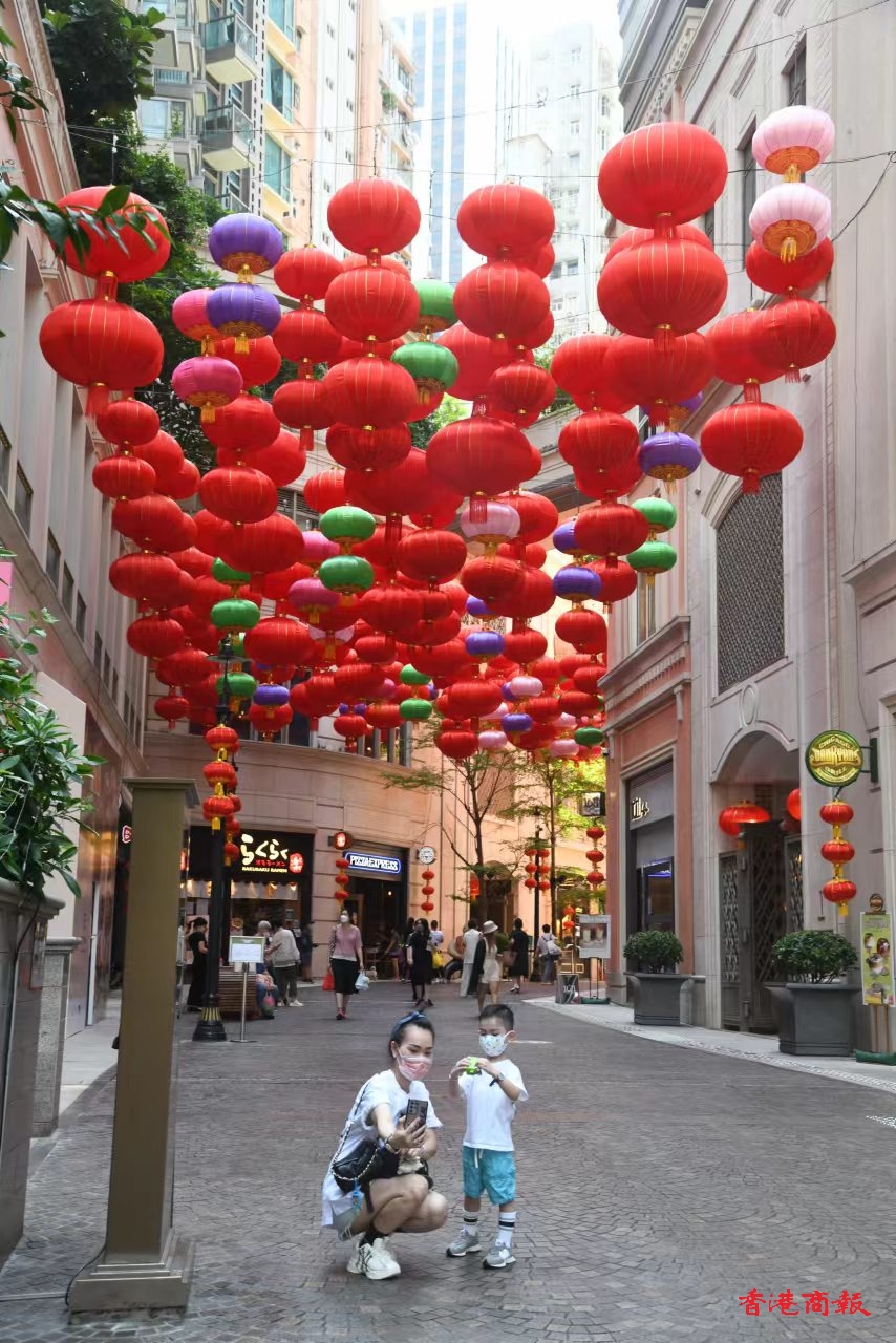 色彩繽紛的燈籠早成中秋佳節標誌之一。超過600個七彩燈籠裝飾就會於9月11日至10月25日期間掛滿灣仔利東街,整條林蔭大道都會懸掛以紅、粉紅、綠及紫為主的七彩燈籠,五光十色,襯托兩邊結合中西特色的建築,更加豔麗,讓現場佳節氣氛更加濃厚,成為市民熱切期待的打卡熱點。(攝影 蔡啟文)