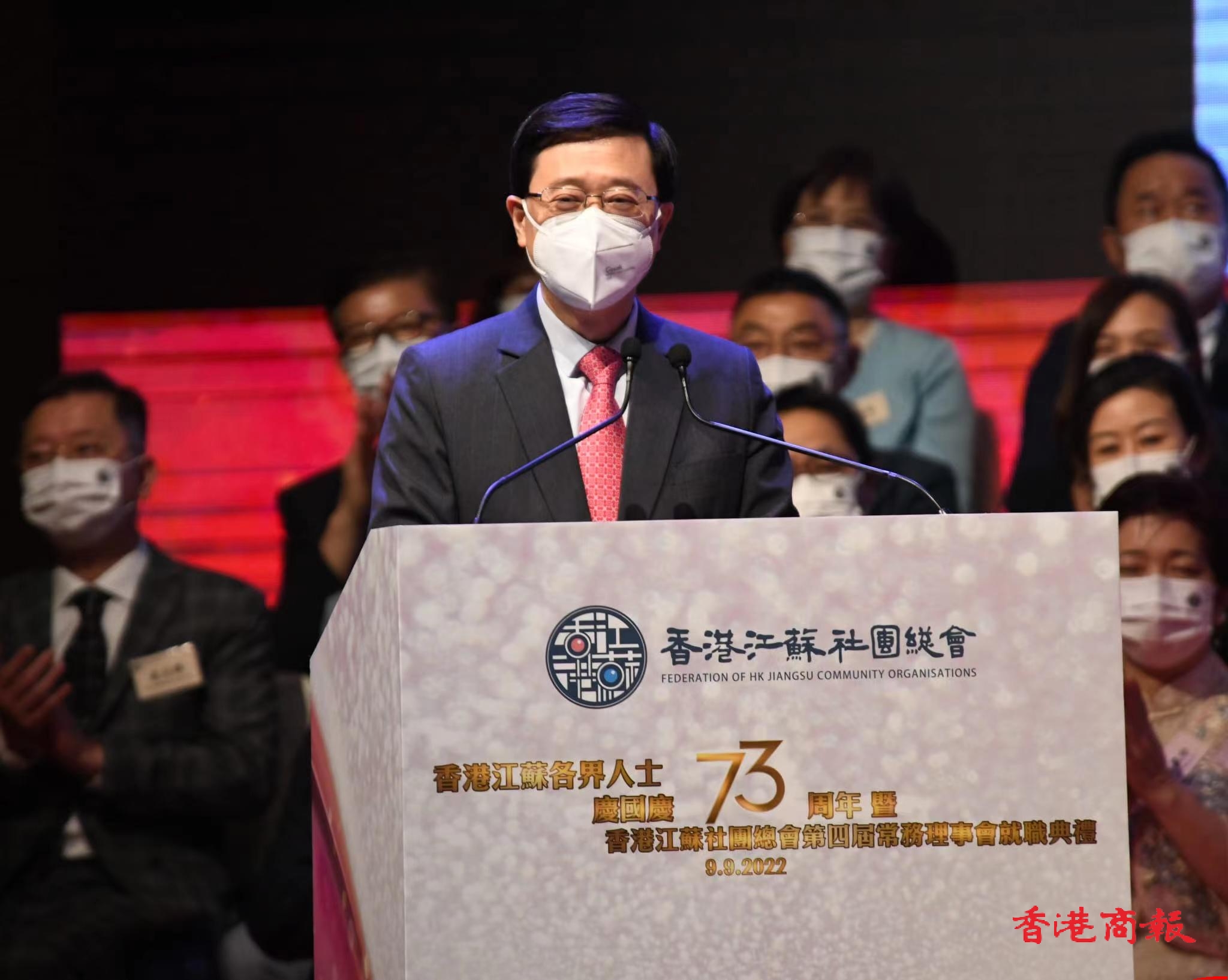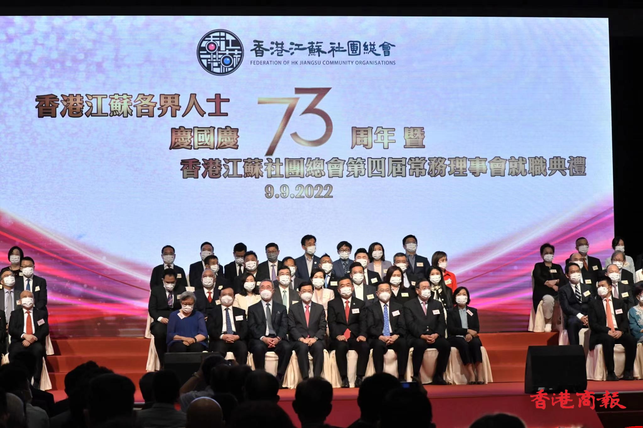 香港江蘇各界人士慶國慶73周年暨香港江蘇社團總會第四屆常務理事會就職典禮今晚舉行。行政長官李家超應邀出席典禮,擔任主禮嘉賓並致辭。出席典禮的主禮嘉賓還有中聯辦副主任何靖、外交部駐港特派員公署副特派員方建明、立法會主席梁君彥等。