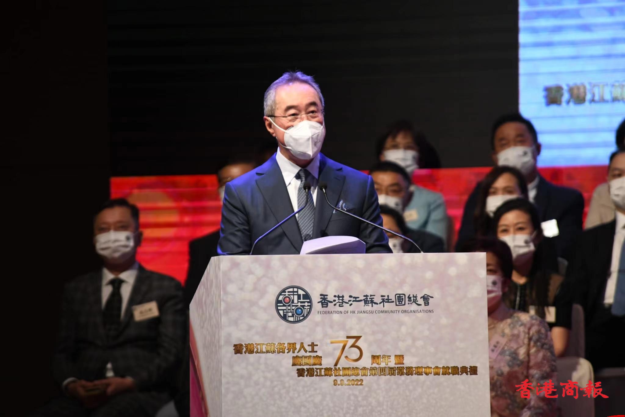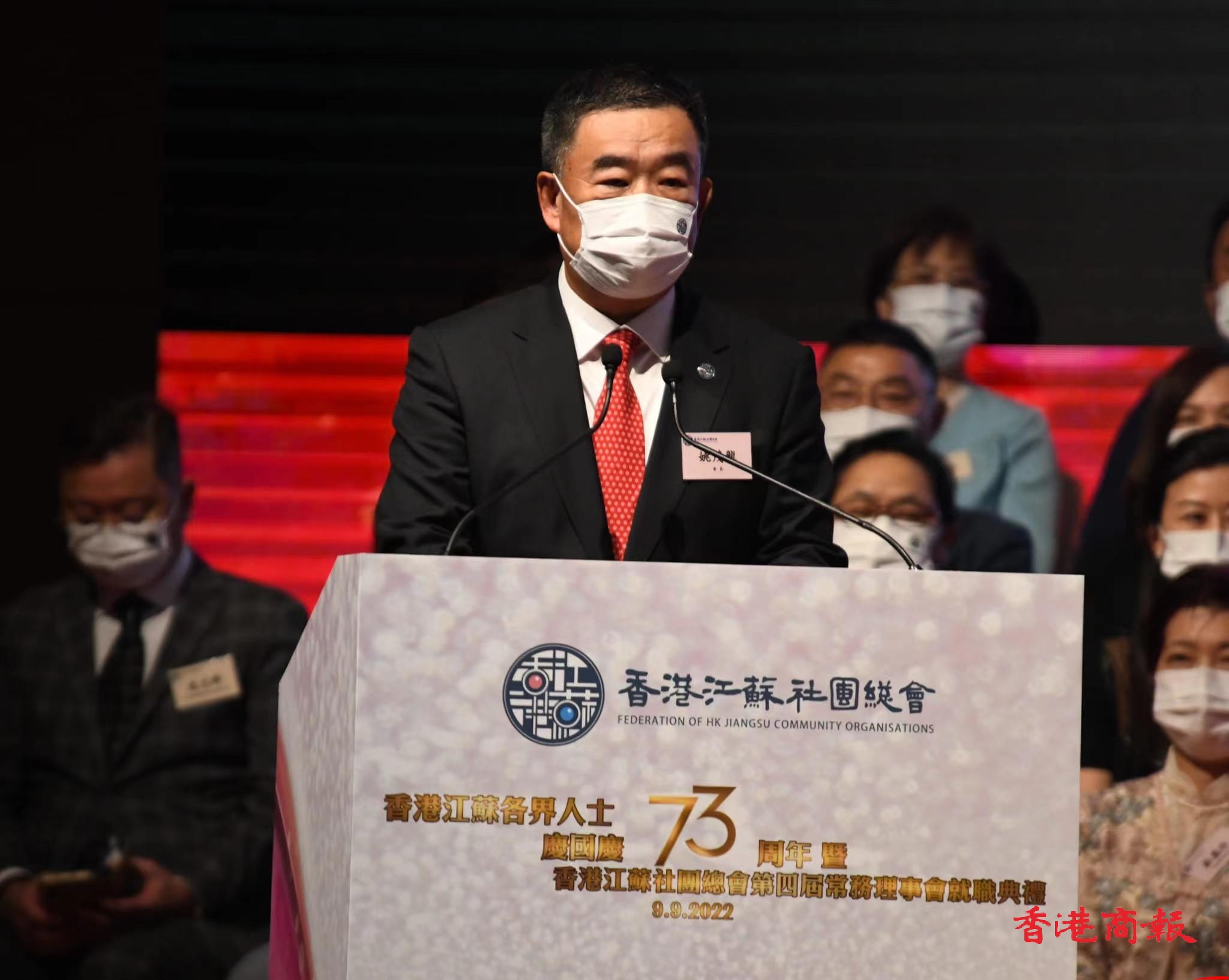 李家超致辭時表示,香港江蘇社團總會本着愛國、愛港、愛鄉的精神,團結居港鄉親,致力促進蘇港兩地的經貿和文化交流。同時,總會堅定不移地維護「一國兩制」,是建設香港的中堅力量。