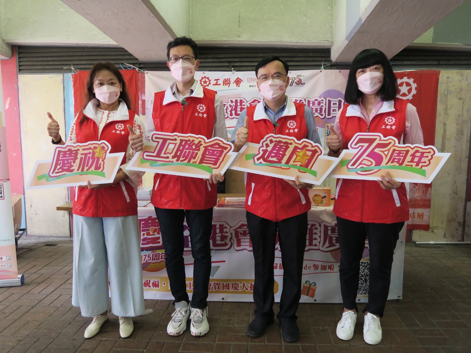 工聯會今日(16日)舉行賀國慶全港會務推廣日及花車巡遊,透過在港九新界設立超過100個街站進行宣傳,慶祝祖國成立73周年,祝福國家未來更加繁榮富強,以及迎接明年工聯會成立75周年鑽禧之年。工聯會會長吳秋北、理事長黃國、副會長梁頌恩及謝愛紅,以及工會和福利機構代表出席會務推廣日啟動禮。