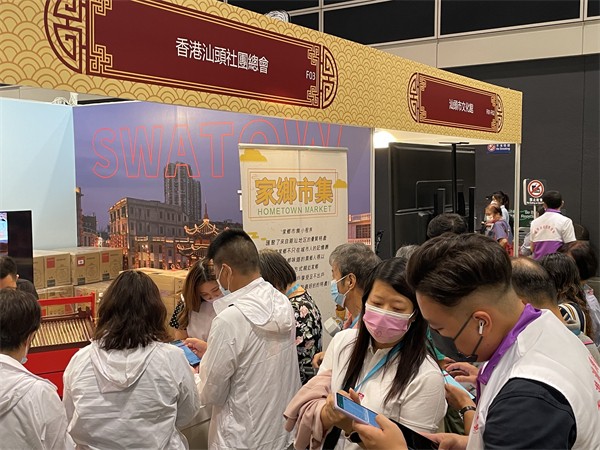 由香港汕頭社團總會推出的「家鄉市集」小程序可購買潮汕特產,攤位前人頭湧湧。
