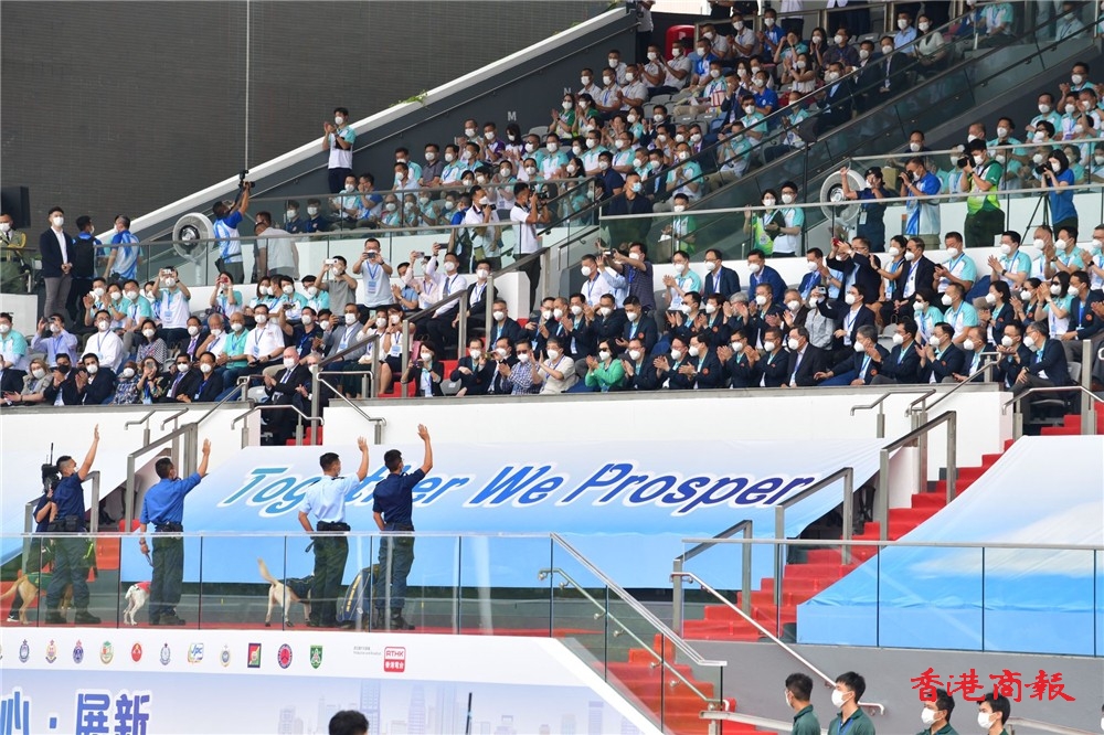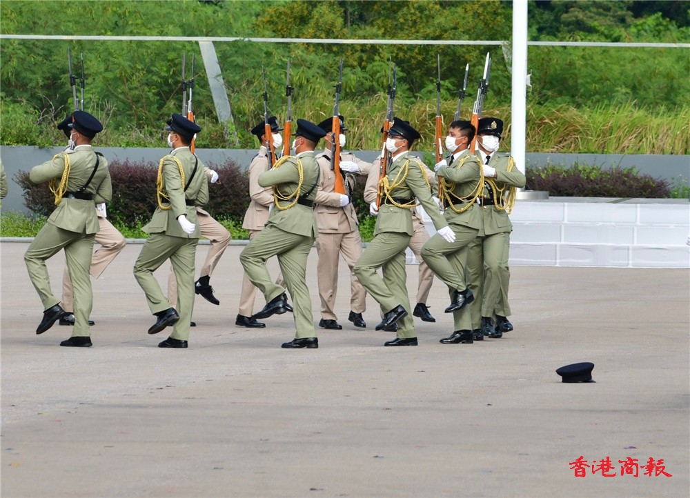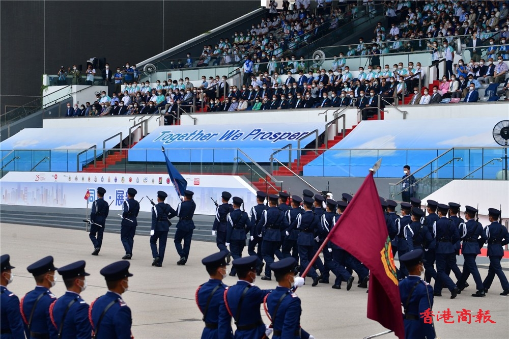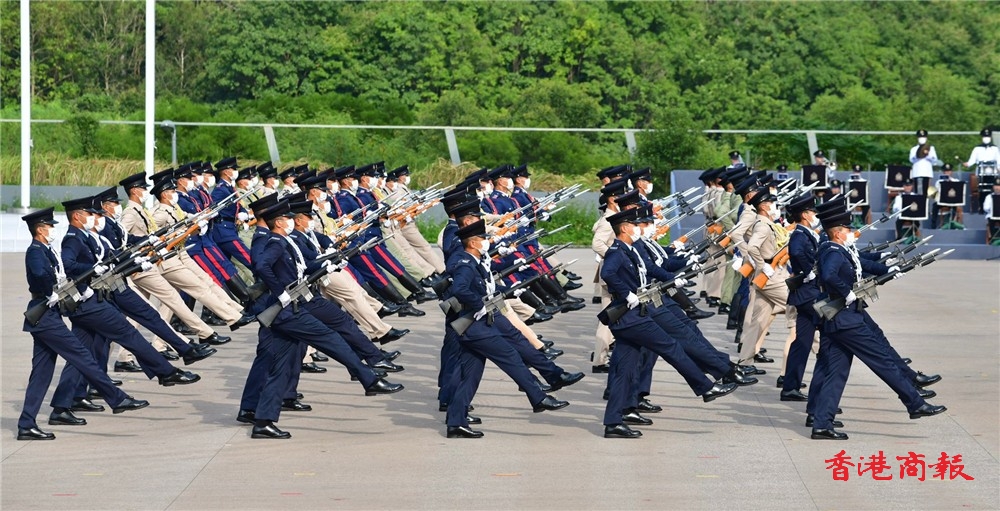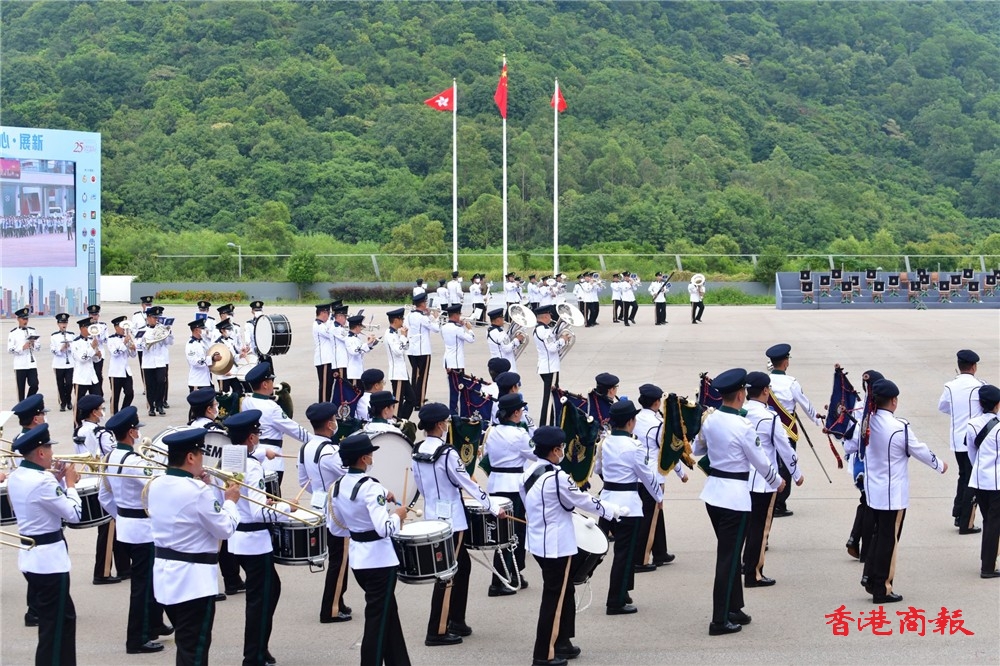 李家超又說,在今日大匯演上,各支紀律部隊同場表演中式步操,是各支部隊轉用中式步操以來,第一次聯合步操表演,充分體現國家主權,亦展現各支部隊團結一致,維護國家尊嚴的堅定決心。