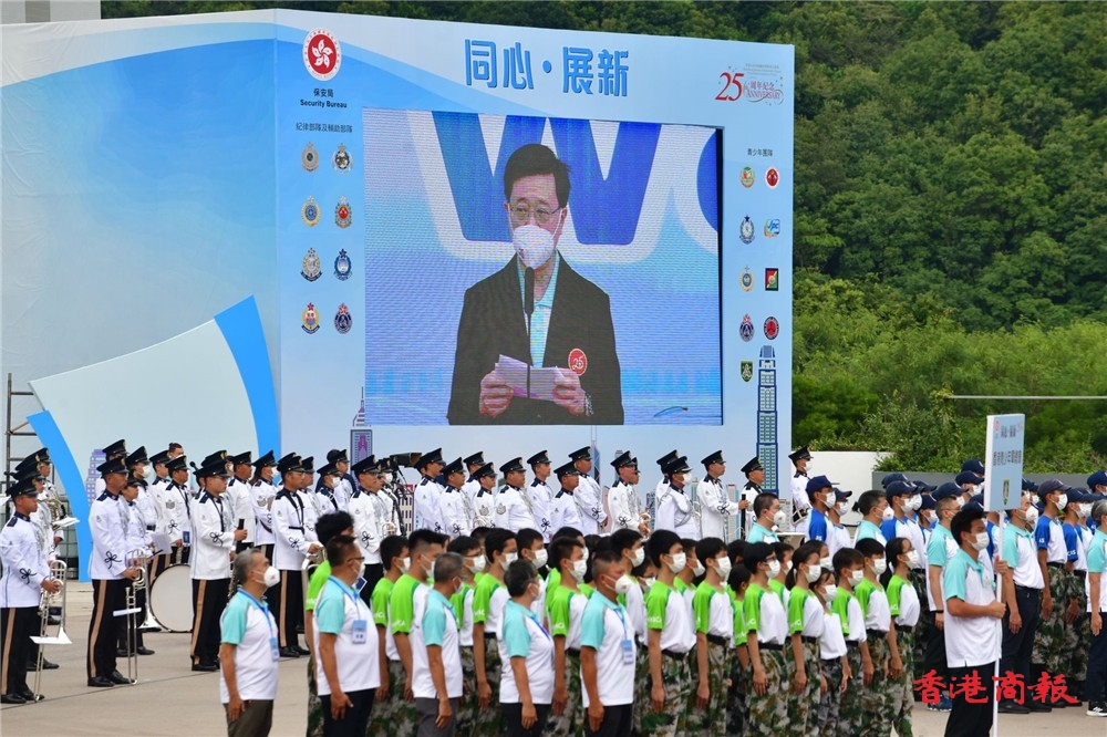 為慶祝中華人民共和國成立73周年暨香港回歸祖國25周年,保安局率領轄下紀律部隊和輔助部隊以及9支青少年團隊,今日(24日)下午在將軍澳消防及救護學院舉行「同心.展新」紀律部隊暨青少年團體步操大匯演,多位香港主要官員、中聯辦、國家安全公署、外交部駐港特派員公署官員出席。行政長官李家超致辭時表示,「青年興,則香港興」,特區政府必須讓青少年建立國民身份認同及正確的價值觀,培養青年為有擔當、有理想,願意為國家未來奮鬥的新一代。而今屆政府成立的民政青年及事務局,以推動青年發展為重點工作,並將公布首份青年發展藍圖,協助下一代裝備自己,為未來發展打好基礎。